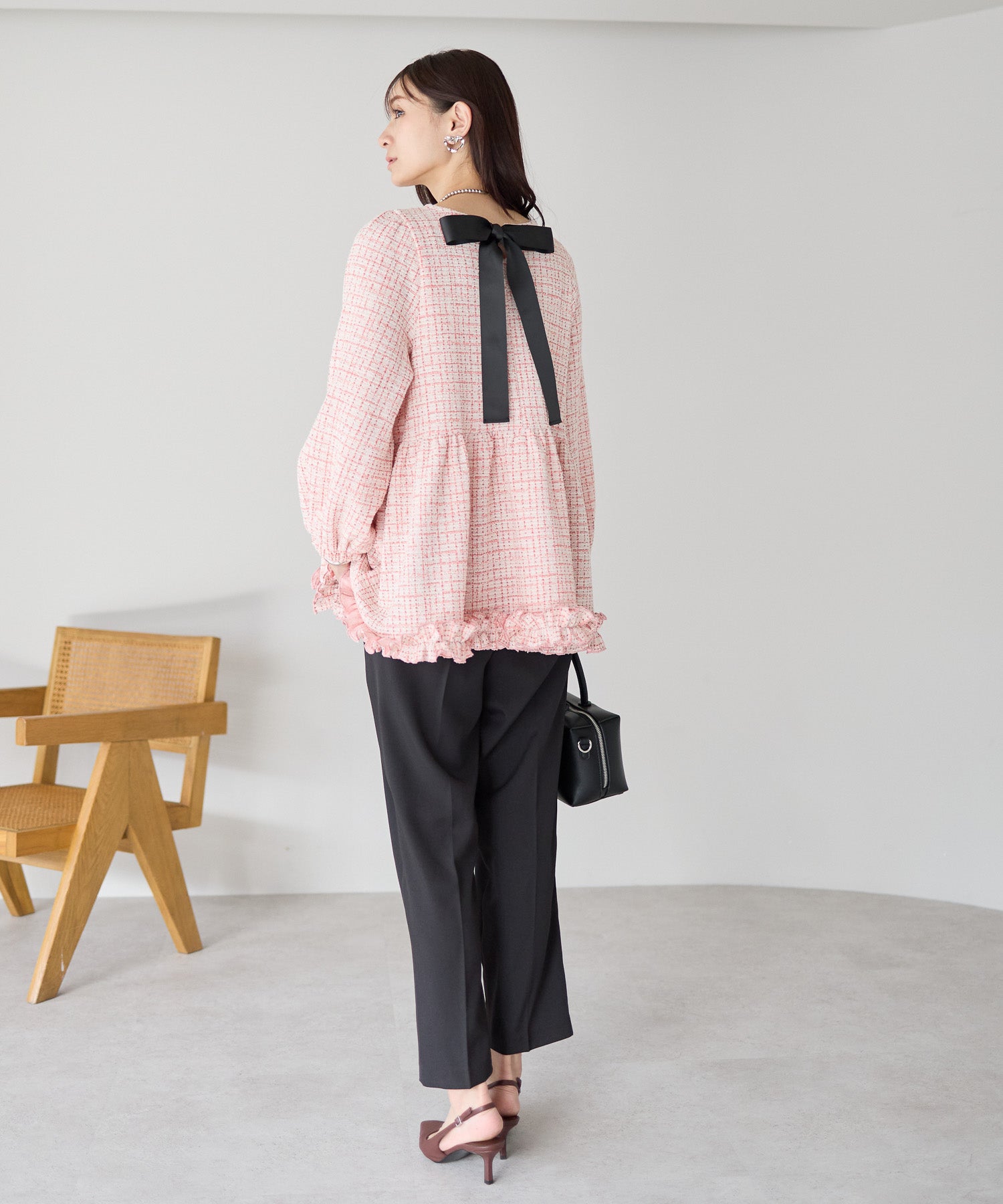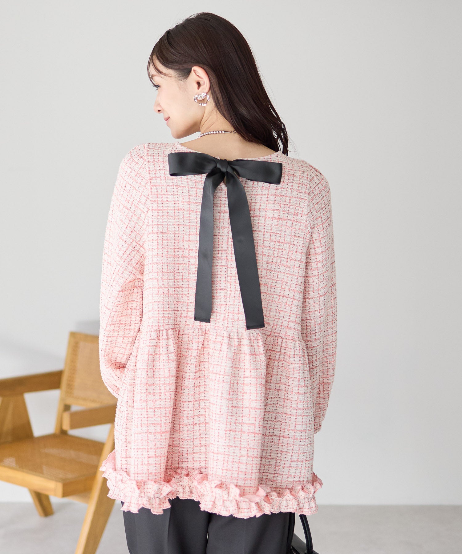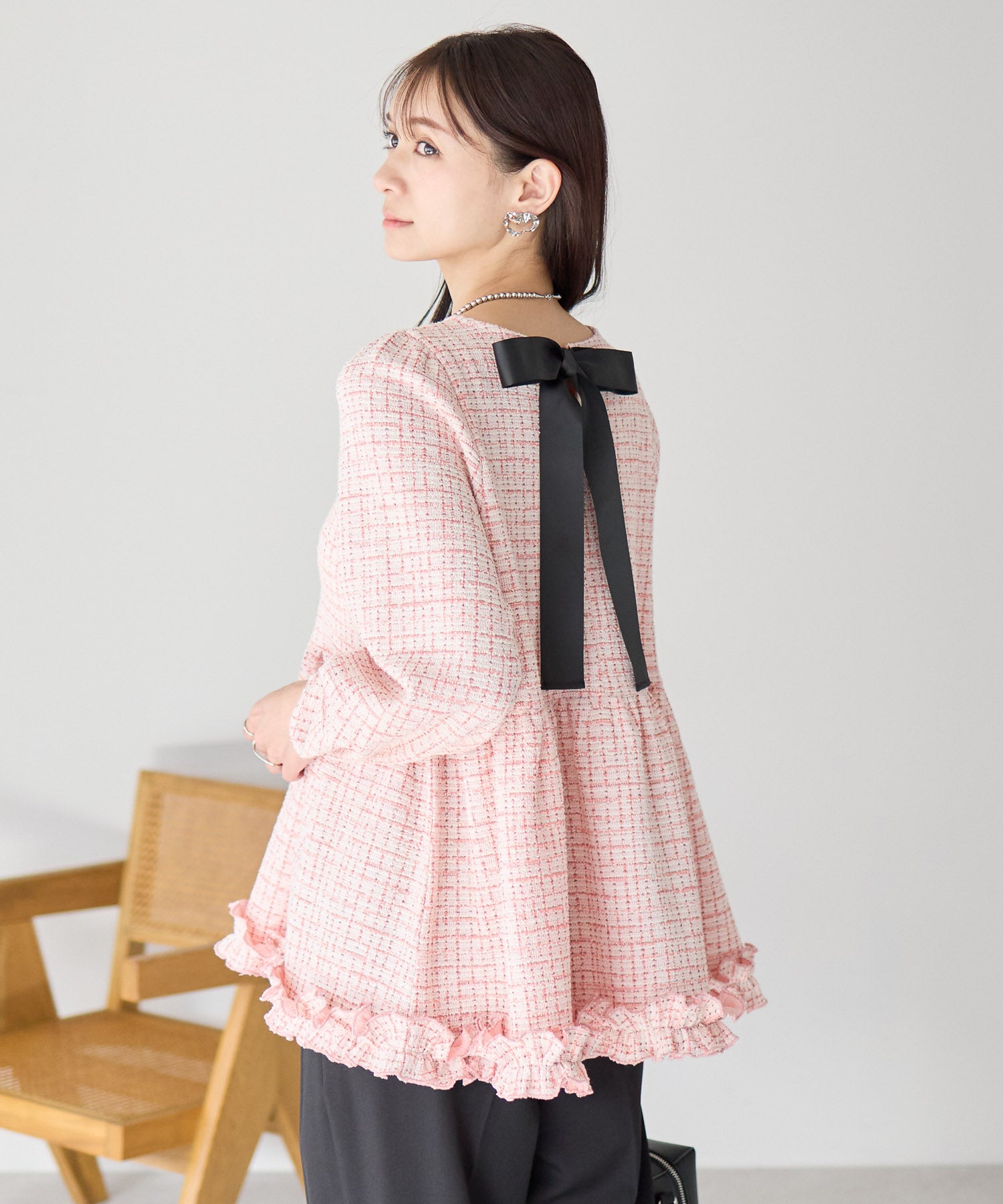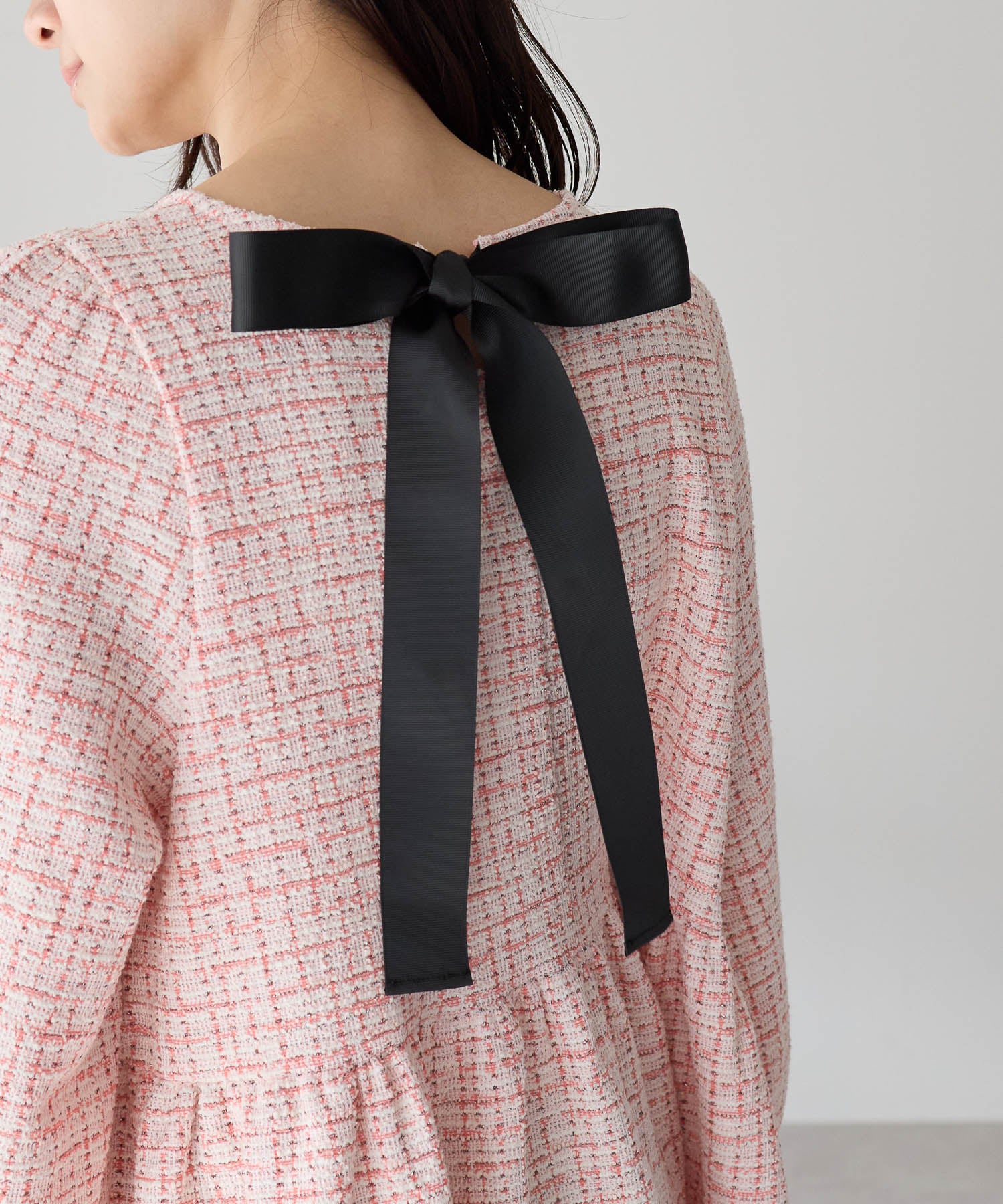 上品なツイードにバックリボンを添えた、大人フェミニンな一枚。