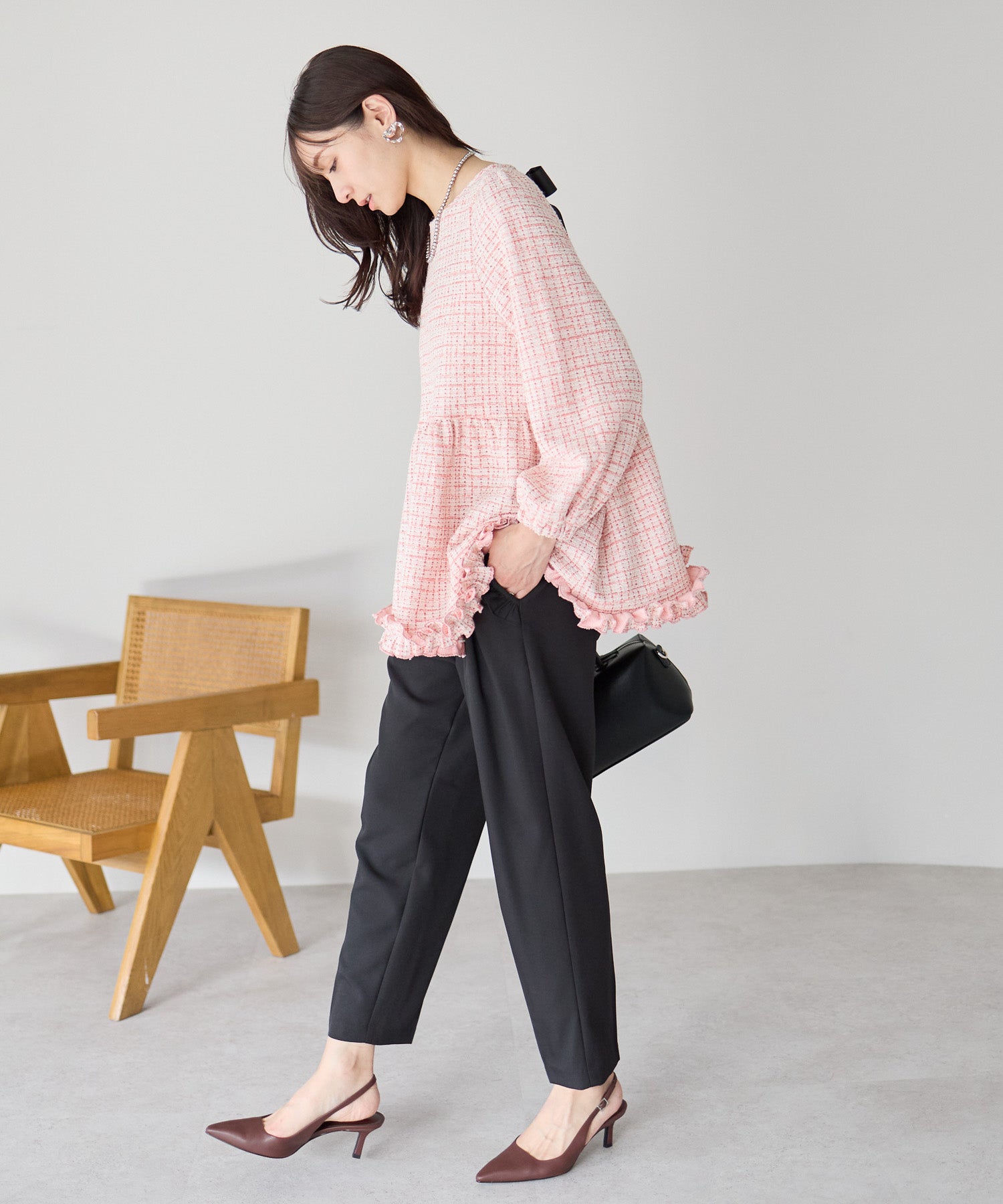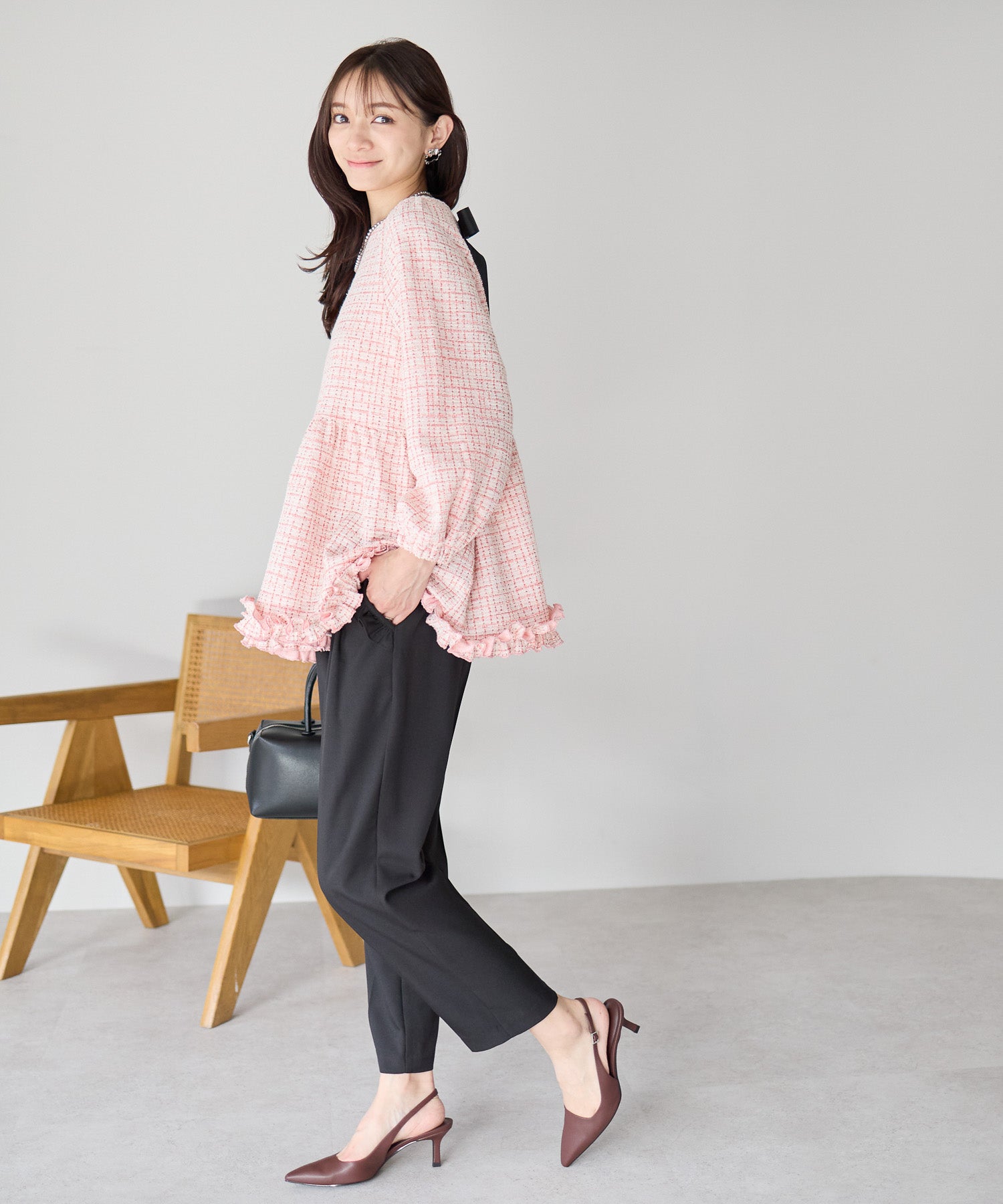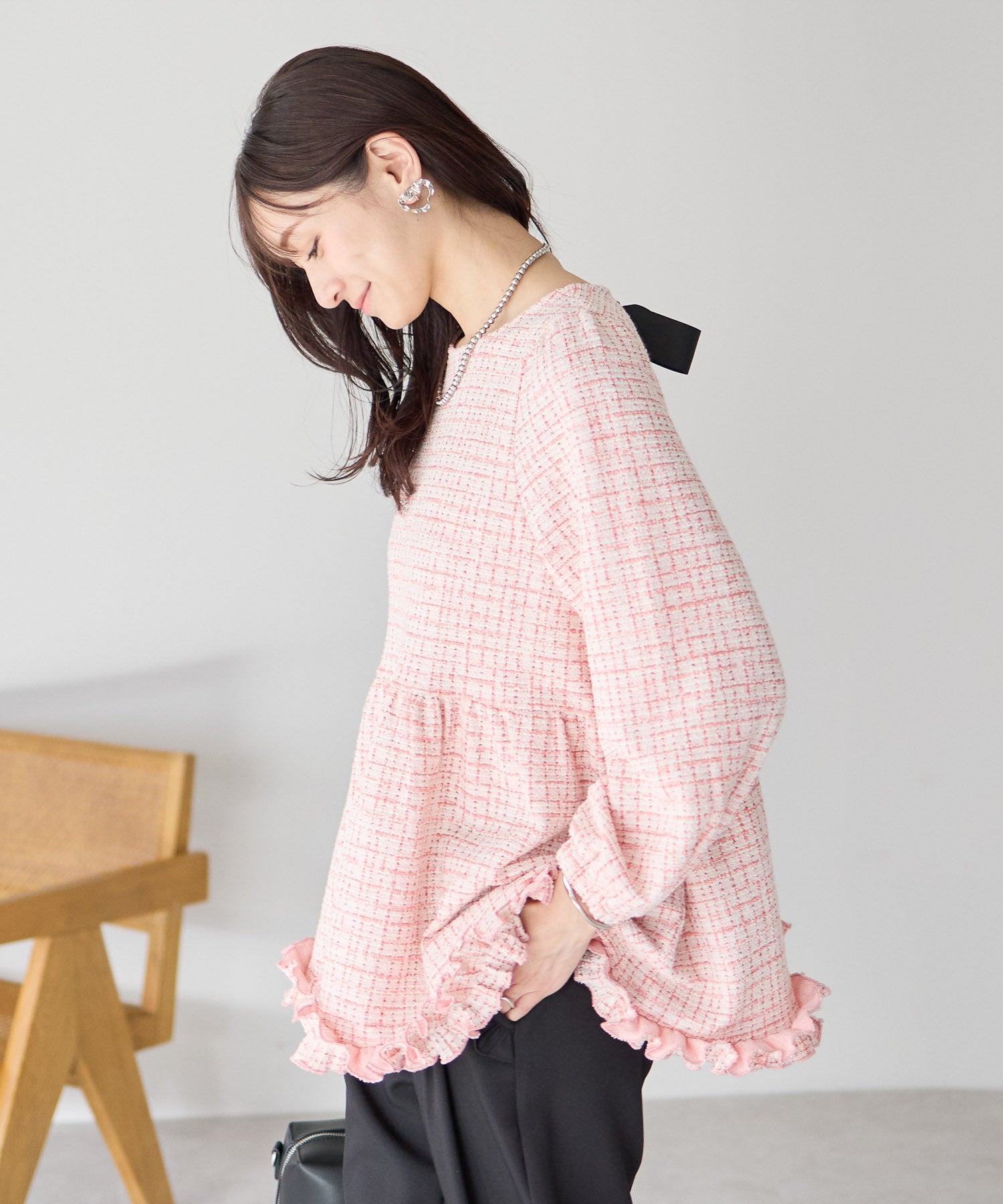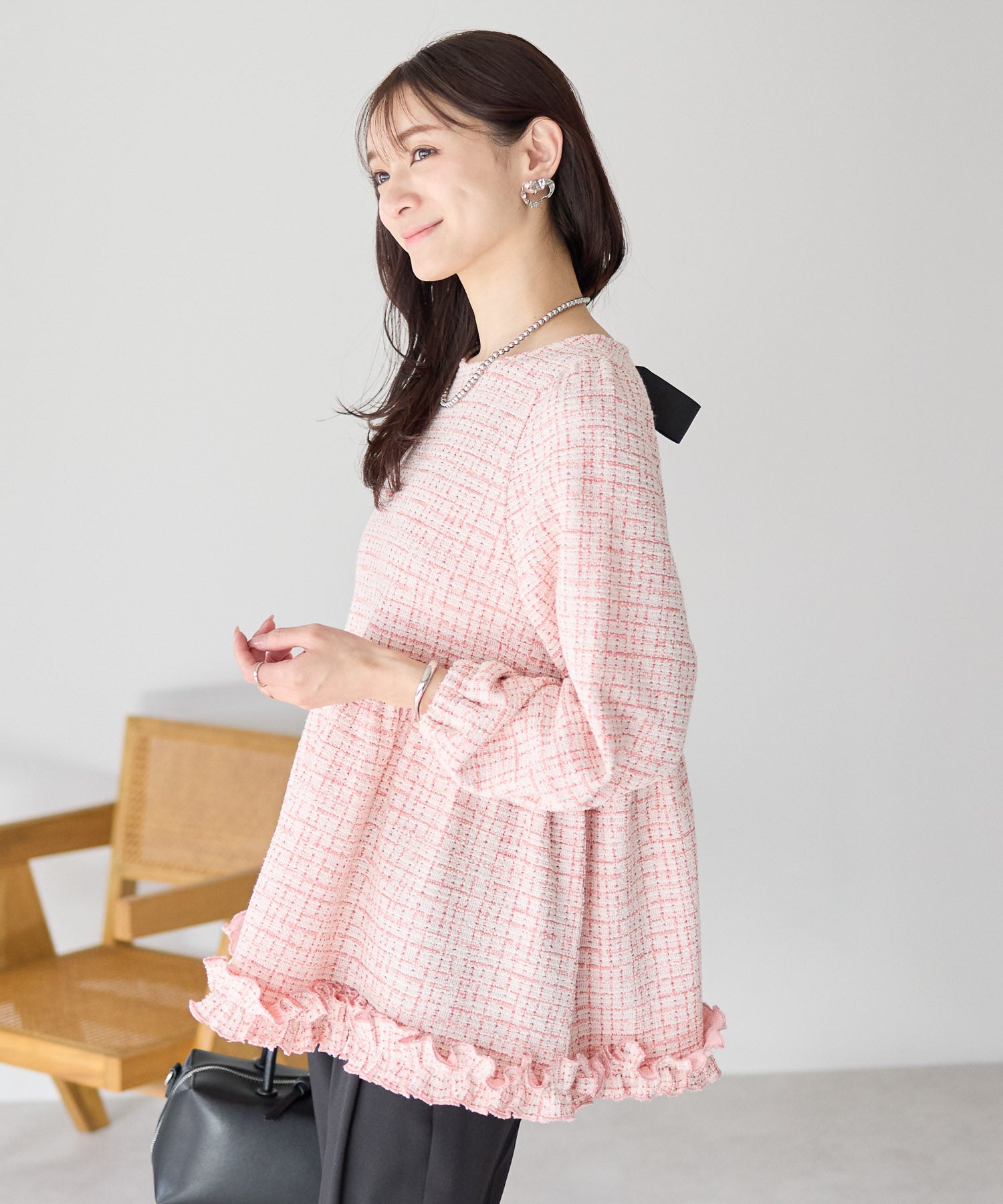 上品なツイードにバックリボンを添えた、大人フェミニンな一枚。