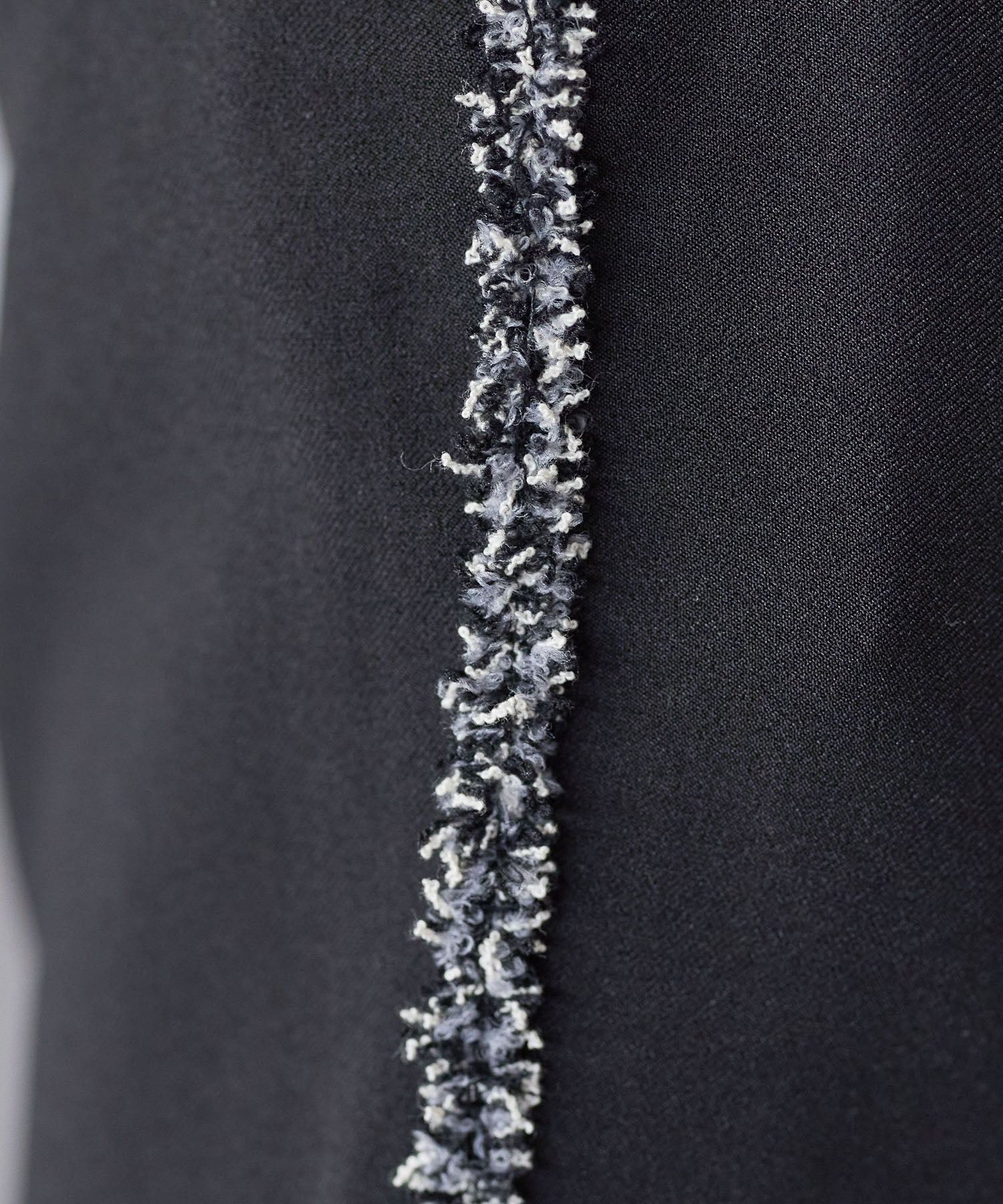 素材感:程よいハリと伸縮性のある素材×サイドにツイードライン