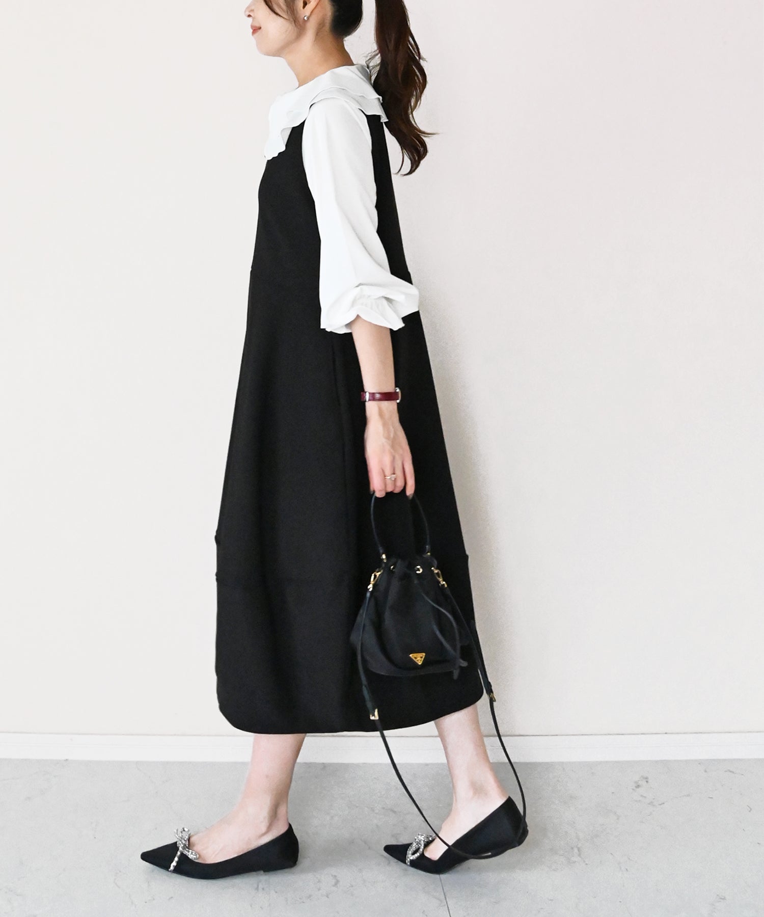 一枚でさらりと着るのはもちろん、春先はシアーインナーやリブトップスを重ねて、ロングシーズン活躍。上品さと実用性を兼ね備えた、大人のためのコクーンワンピースです。