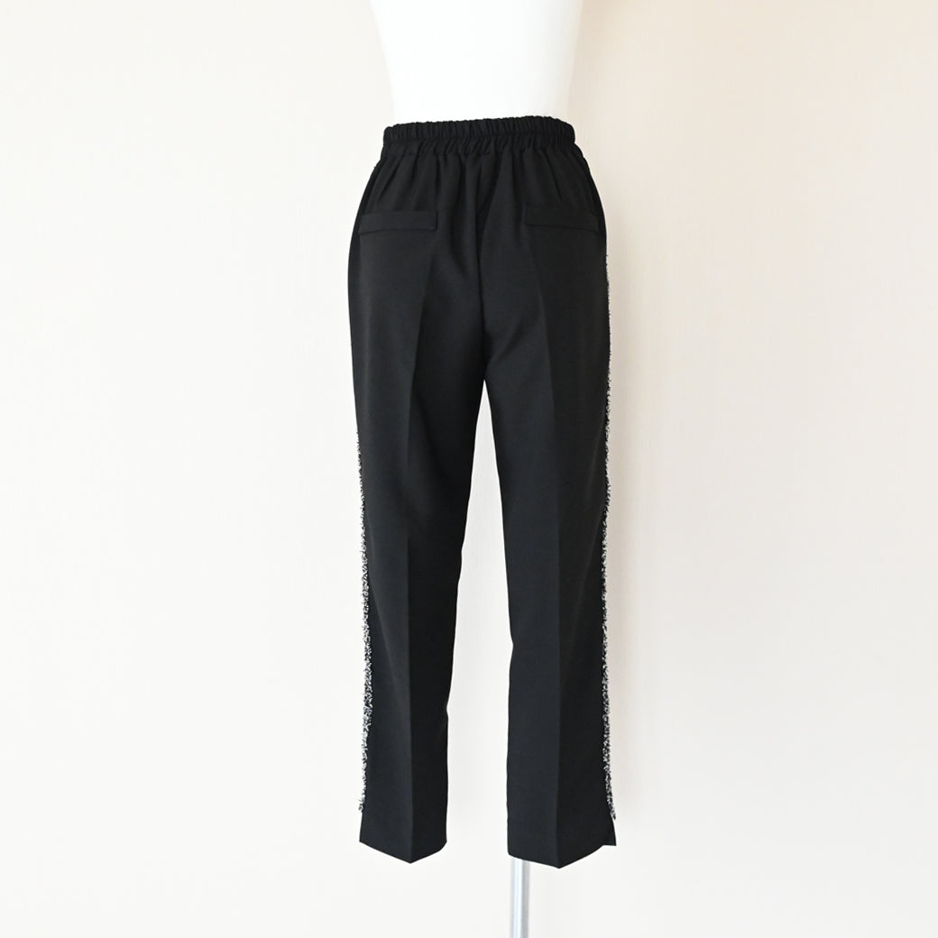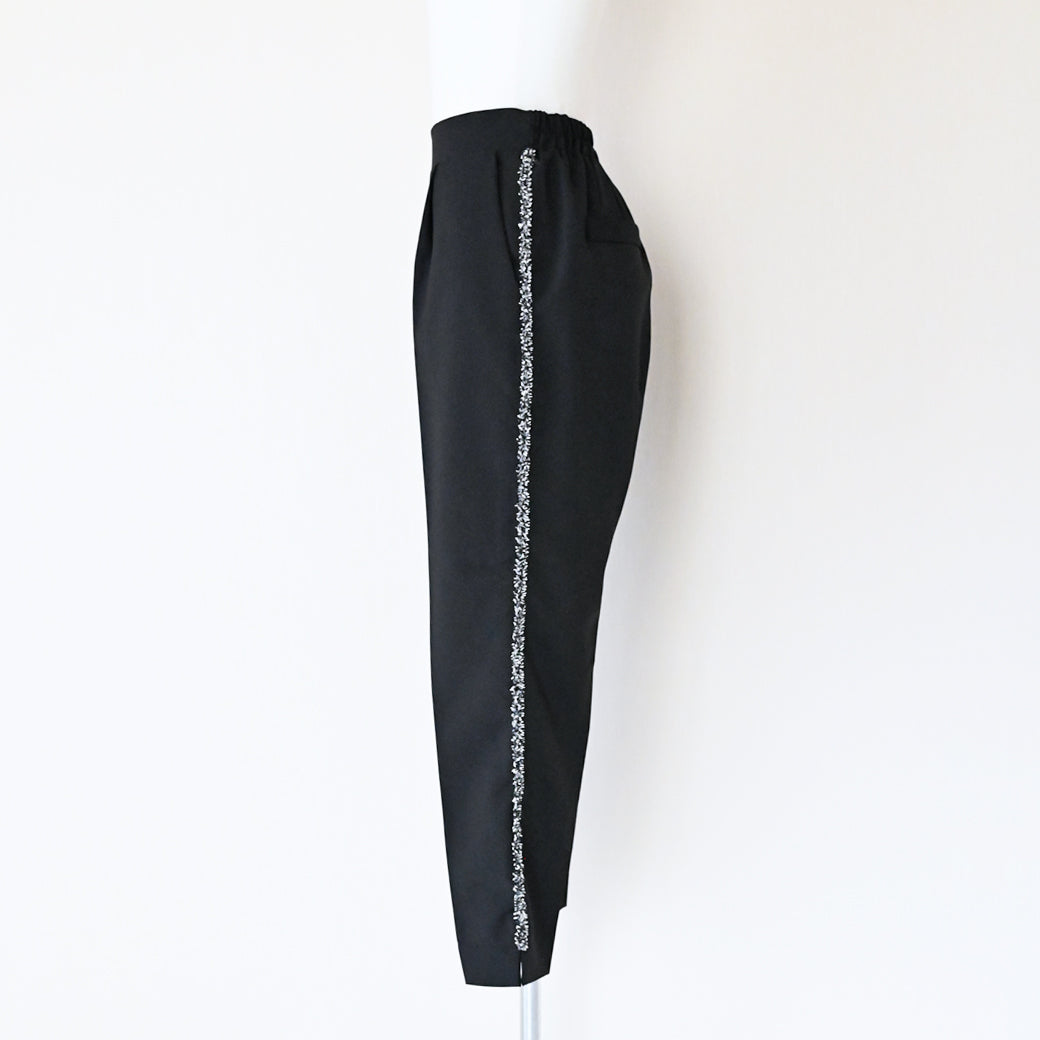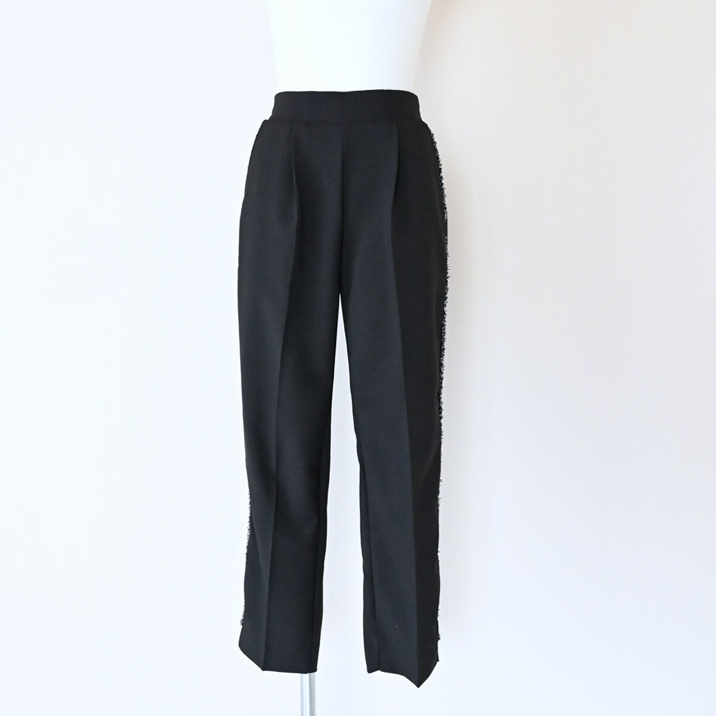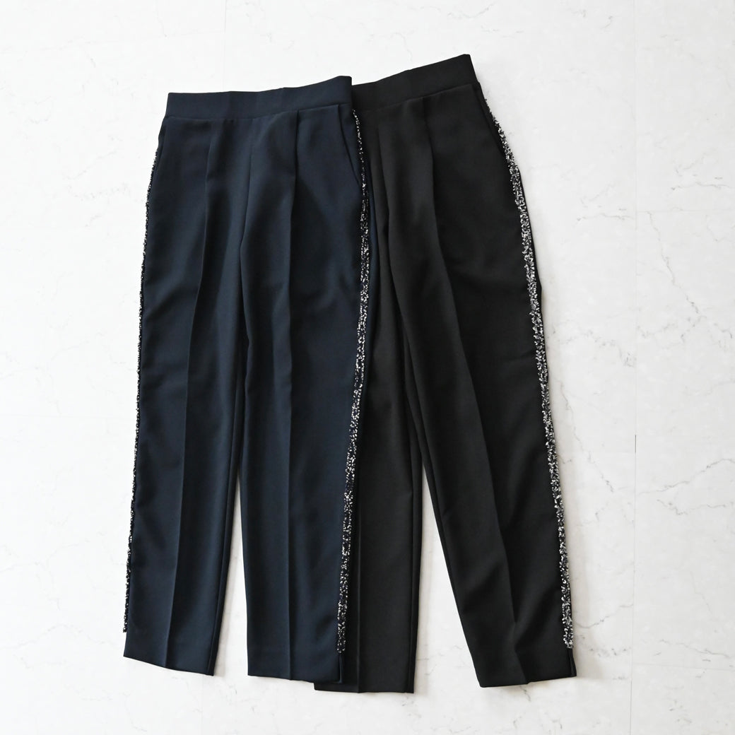 サイドにあしらったツイードラインが、上品で洗練された印象を添えるテーパードパンツ。