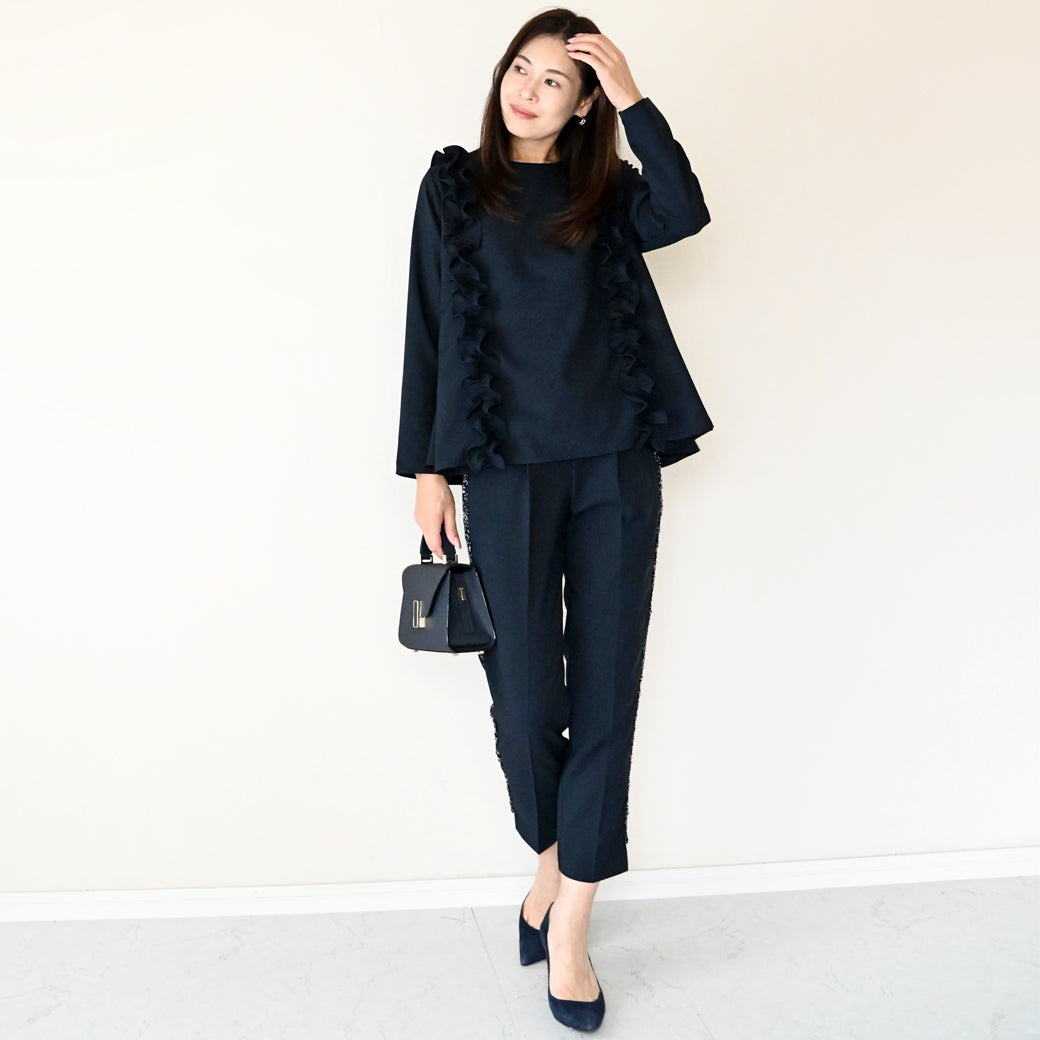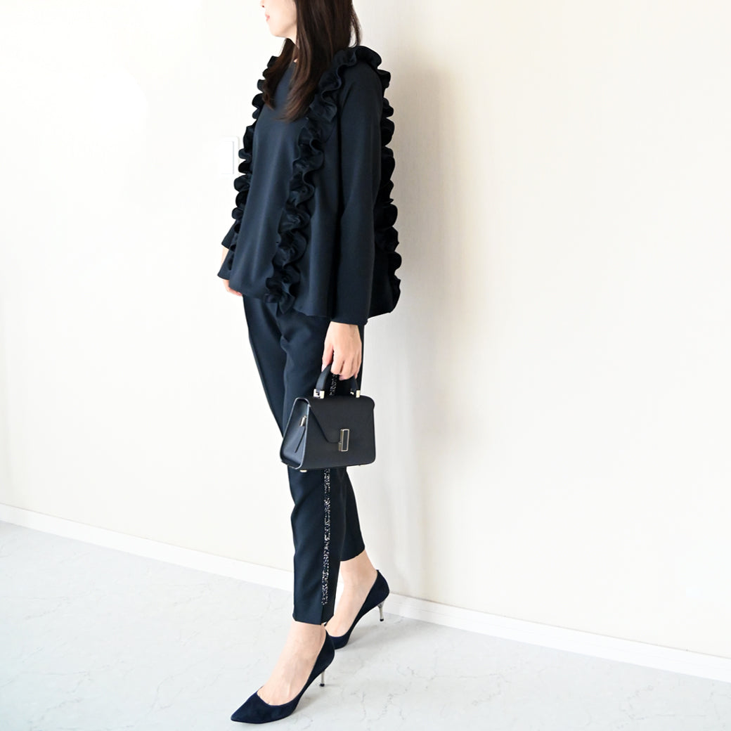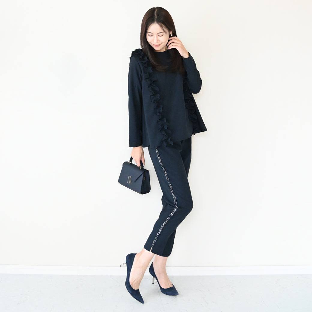 控えめな装飾が程よく映え、甘さを抑えた大人のフェミニンスタイルを叶えます。