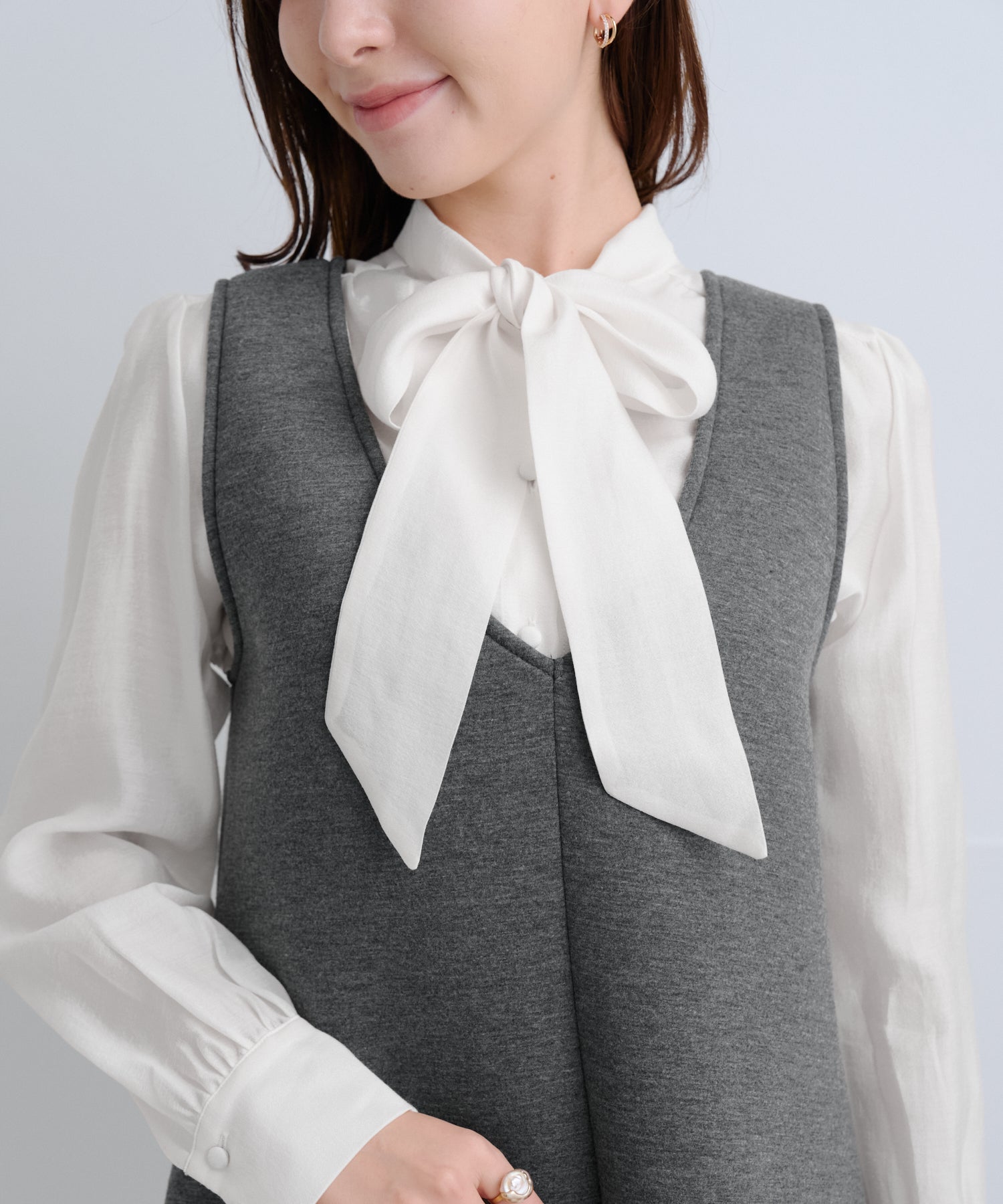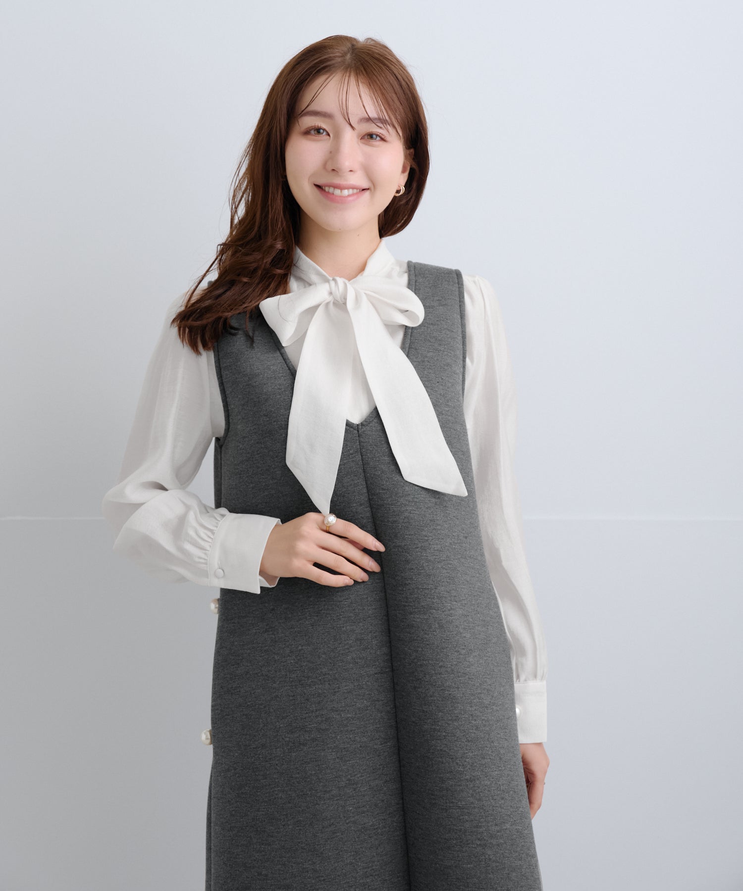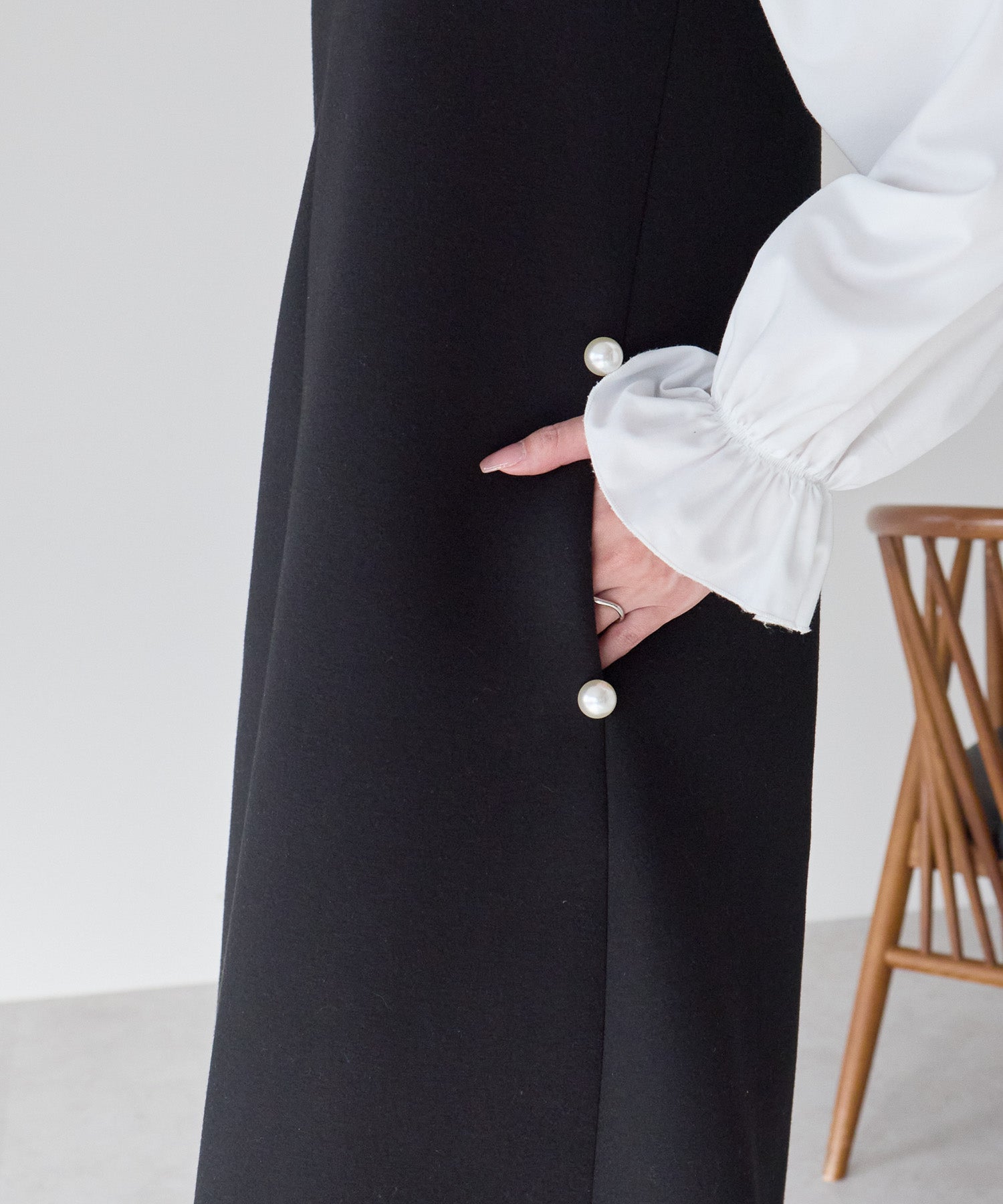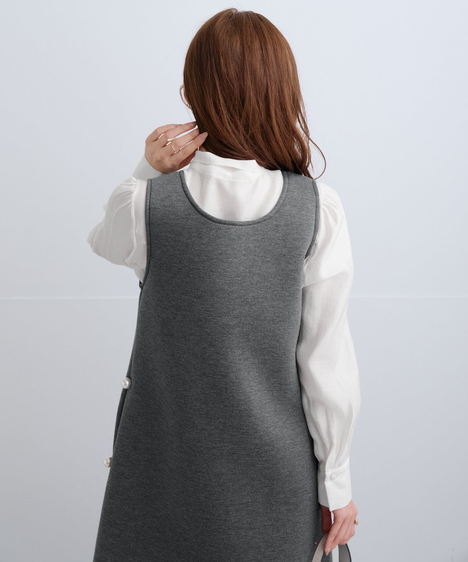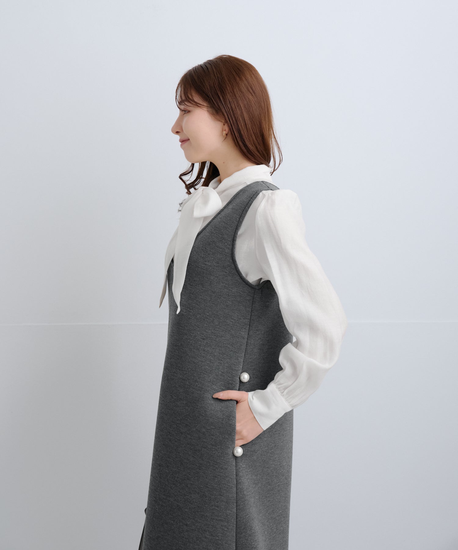 ◆仕様:裾スカラップヘム(断ち切り仕上げ)/サイドパールボタン/ノースリーブデザイン