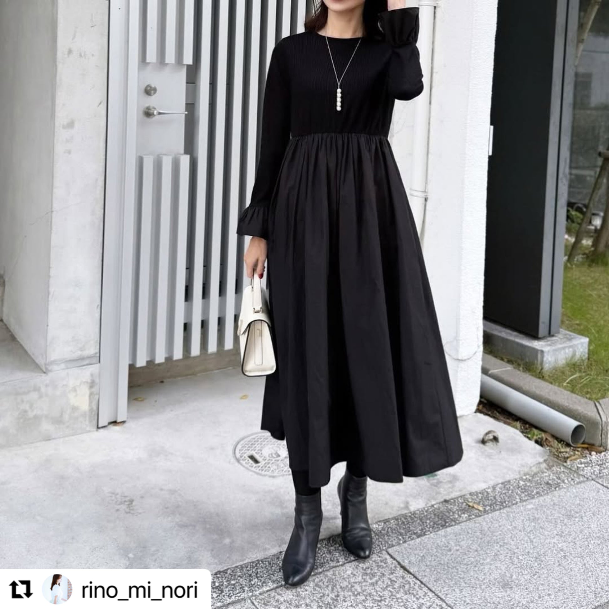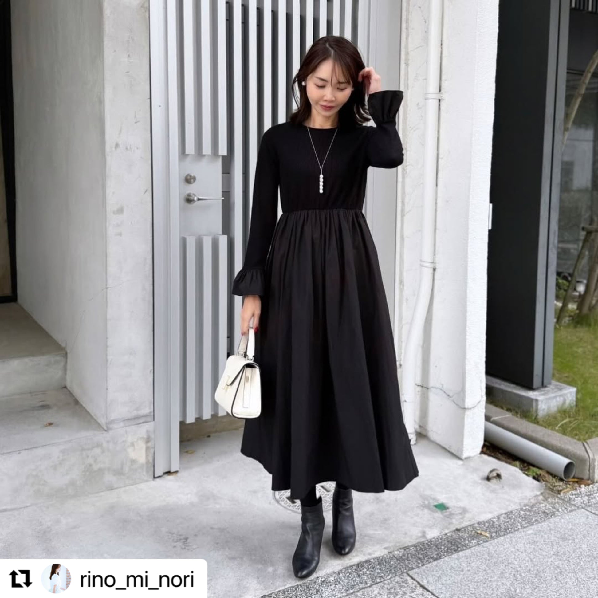 異素材のコントラストが上品さを引き立て、特別な日にもデイリーにも映える一枚です。