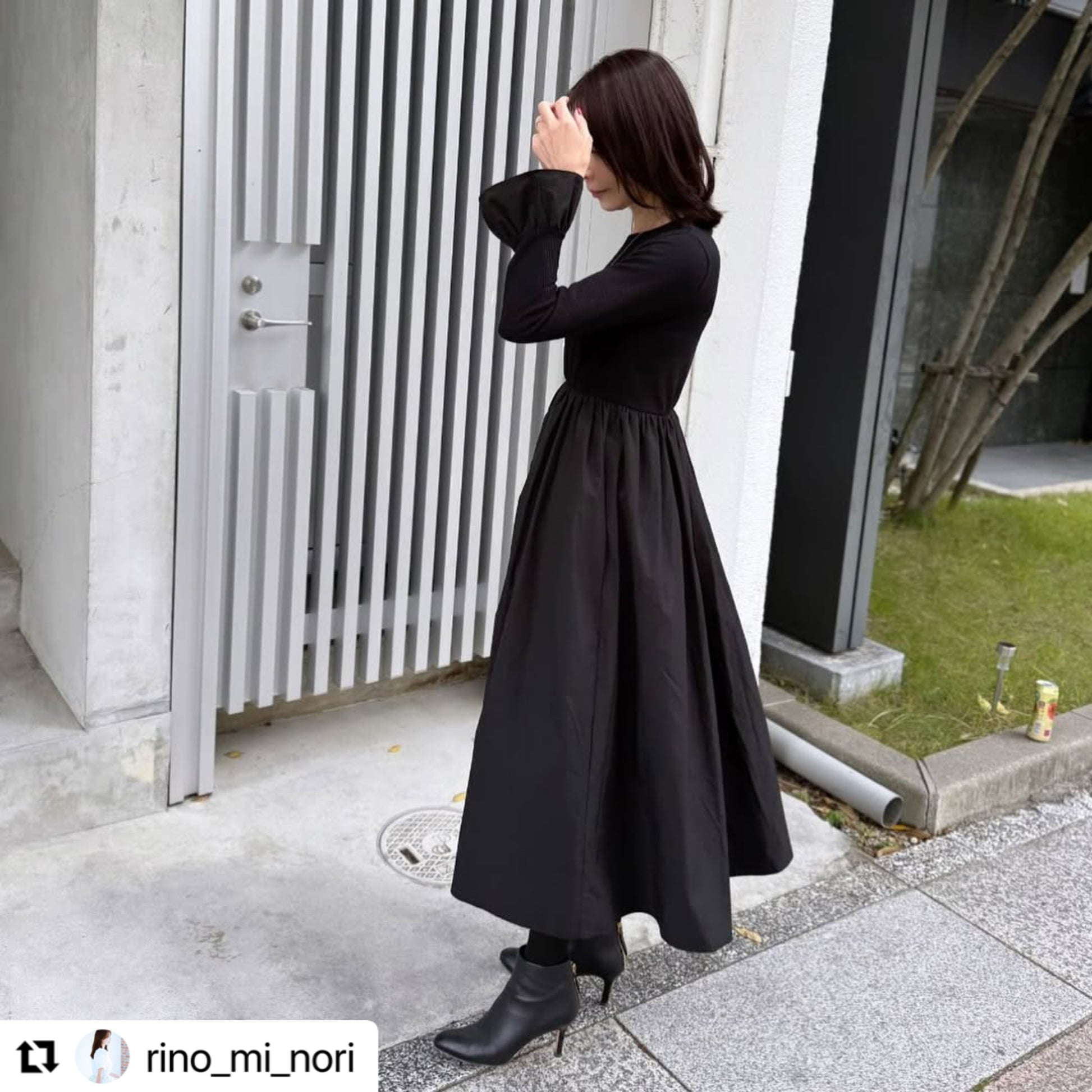 仕様:リブカットソー×タフタ切替デザイン、袖口フレア仕様