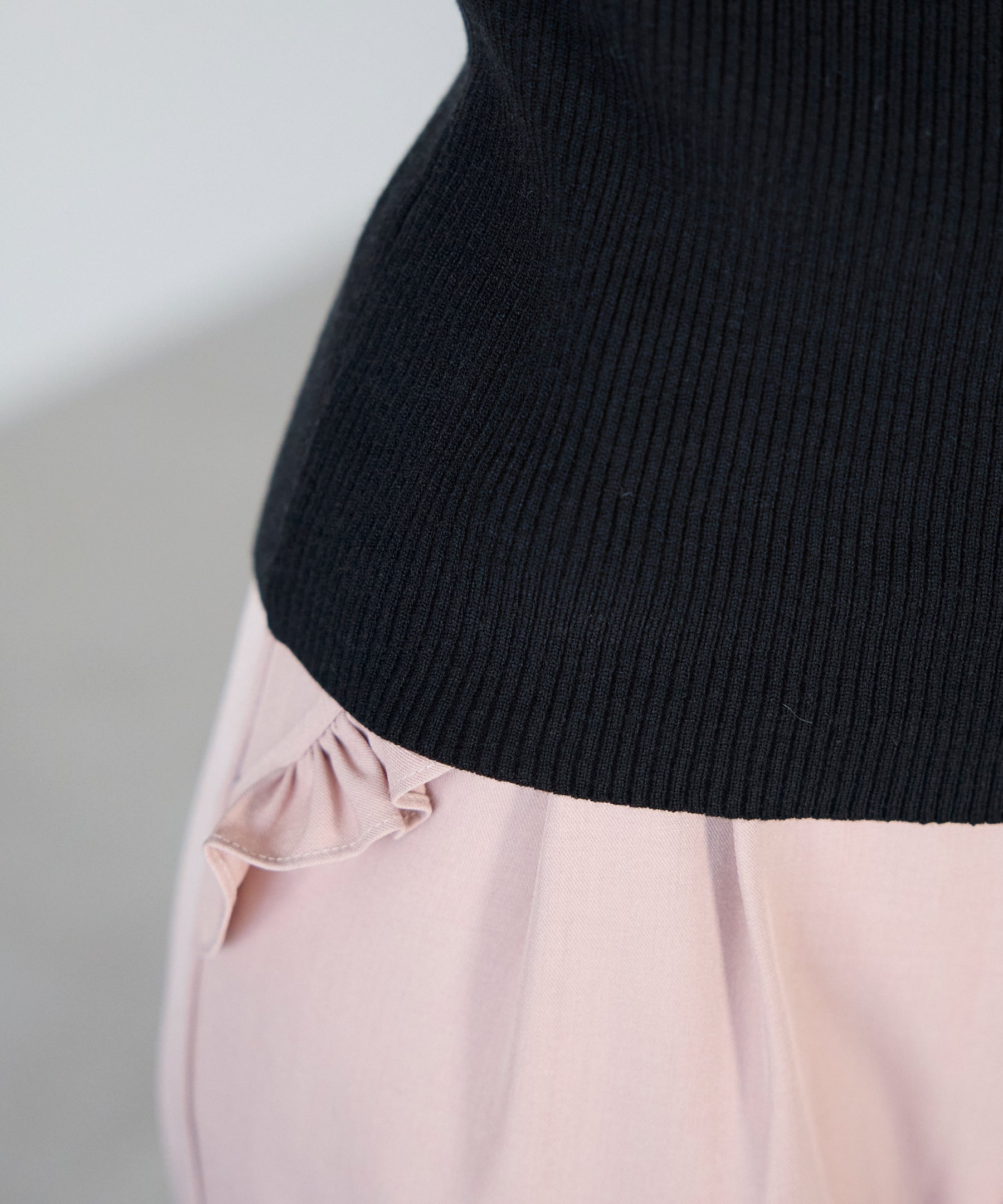 身頃はすっきりとしたリブニットで、インでもアウトでも着やすいシルエット。