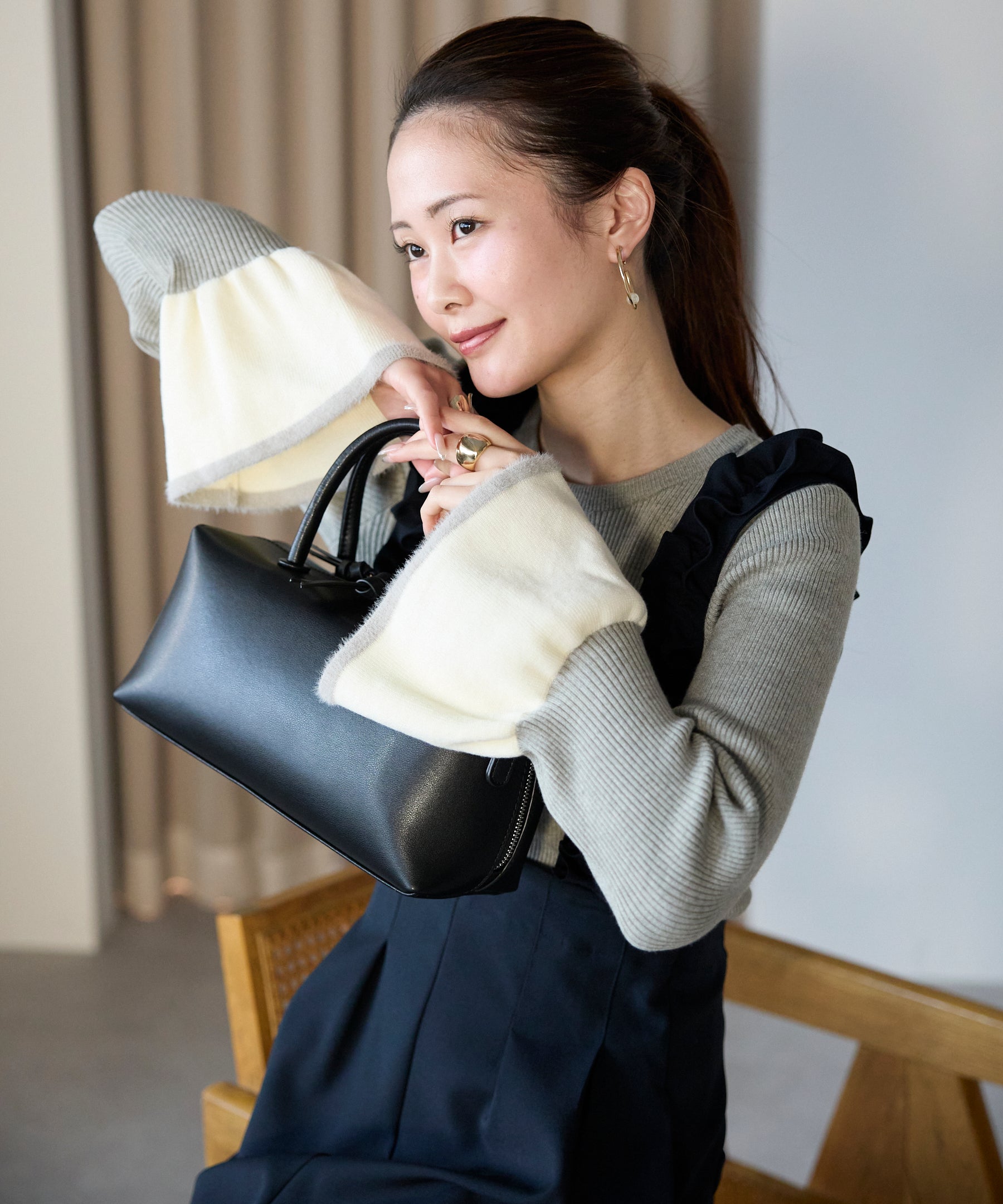 ほどよいニュアンスのある素材感が、手元にやさしいアクセントを添え、軽やかな印象に仕上げています。