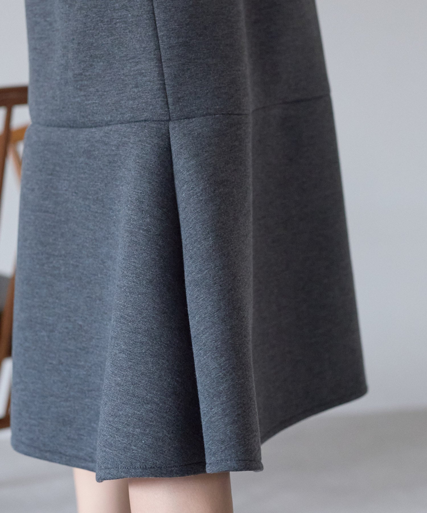 動くたびに広がるシルエットが、女性らしさをさりげなく演出します。