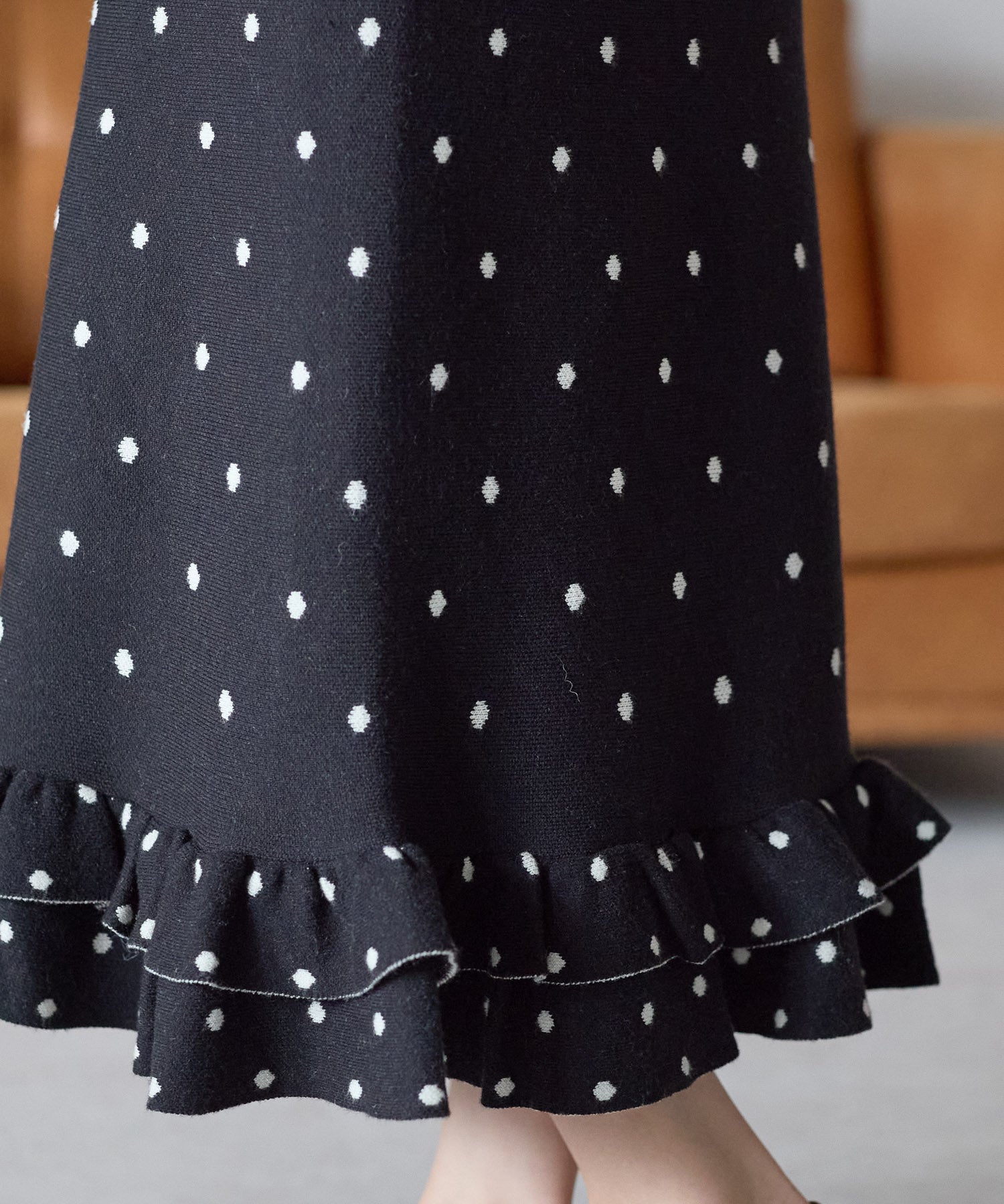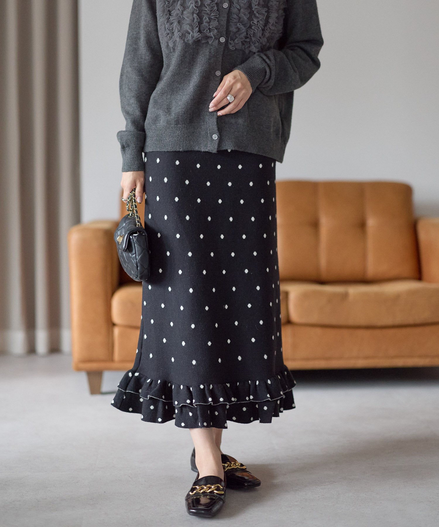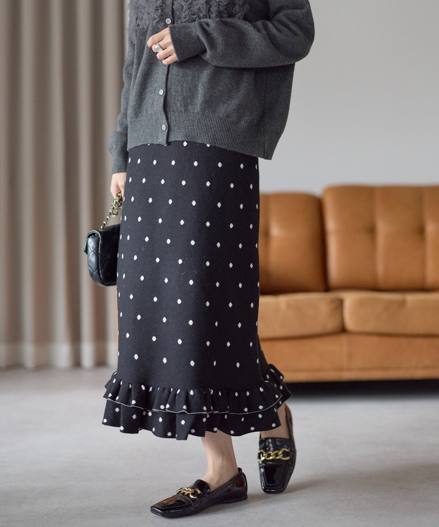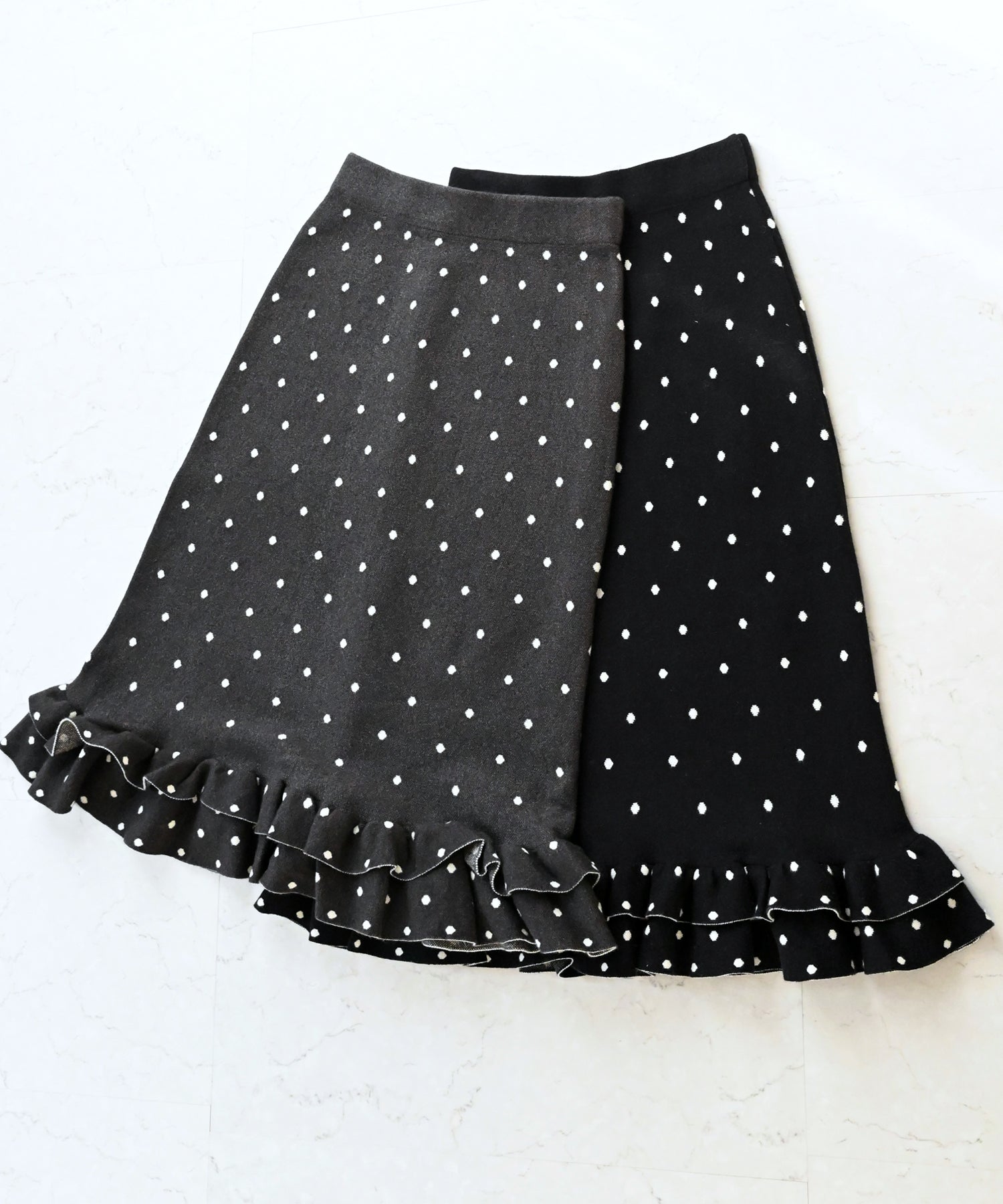 【12月5日(金)13時〜新発売】ミニドットフリルヘムニットスカート