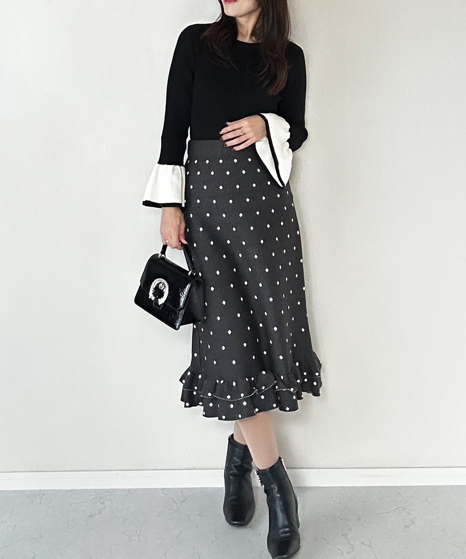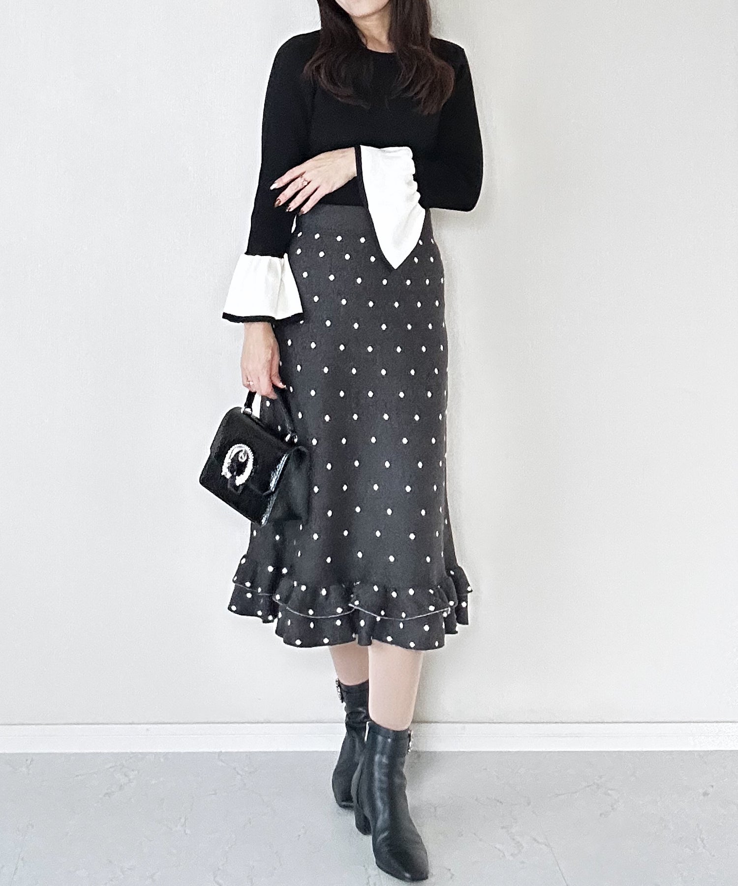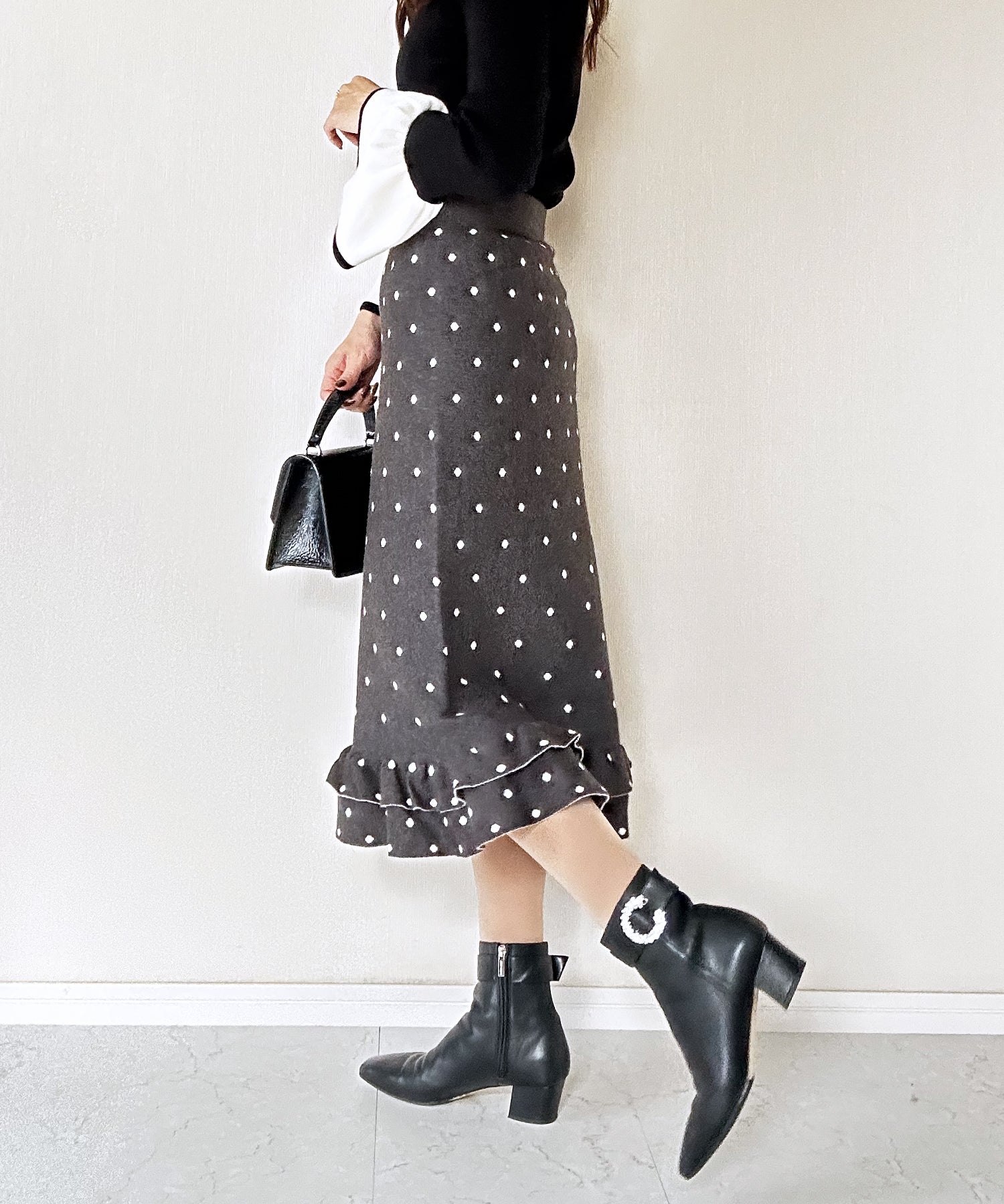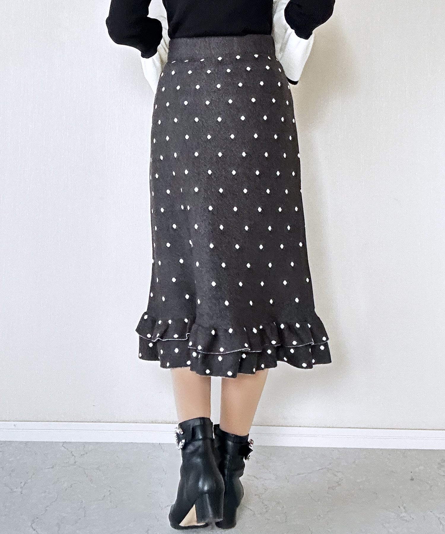 【12月5日(金)13時〜新発売】ミニドットフリルヘムニットスカート