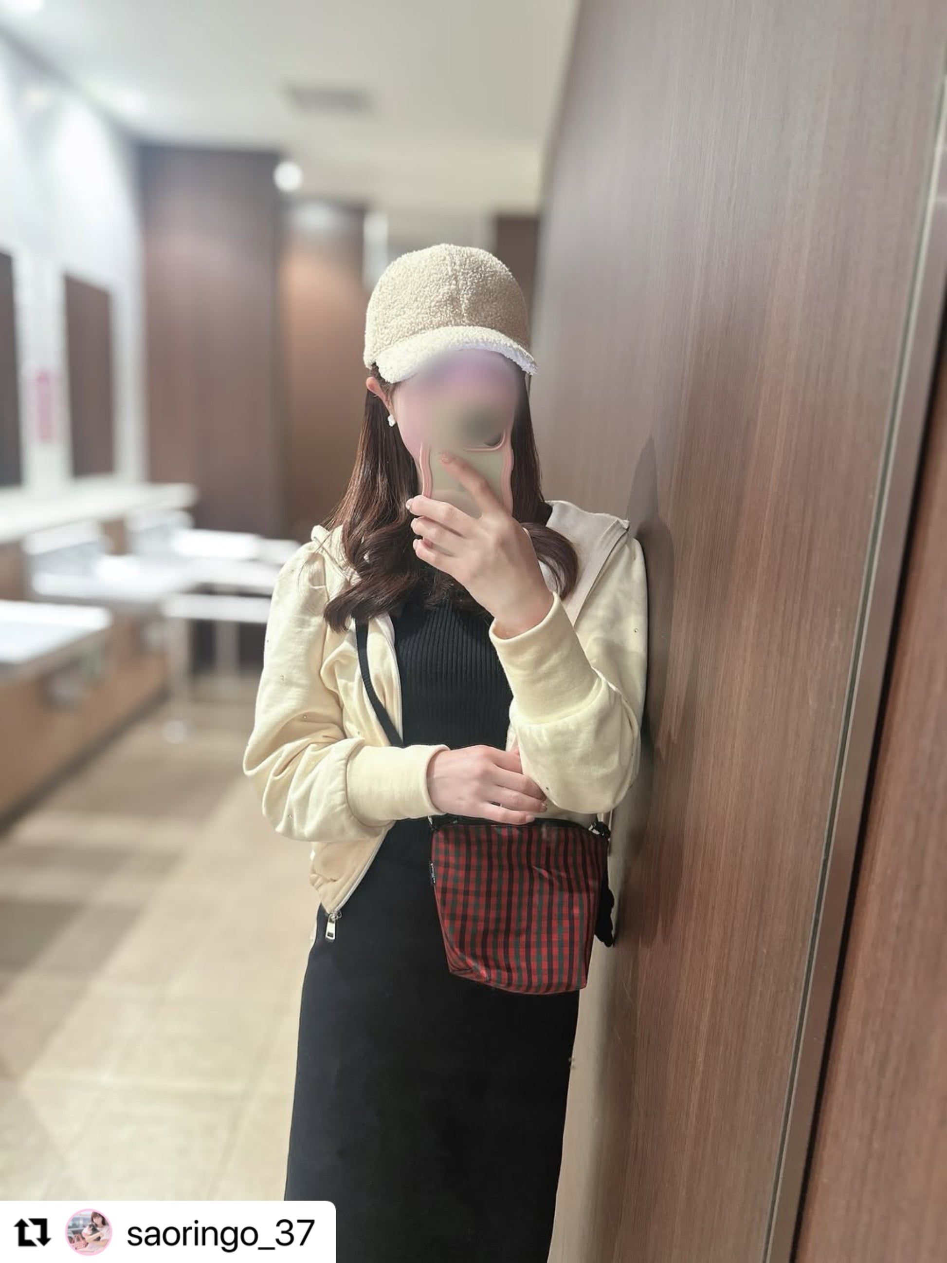 フードのベロア素材の丸紐は、ふっくらとした質感で女性らしいアクセントに。