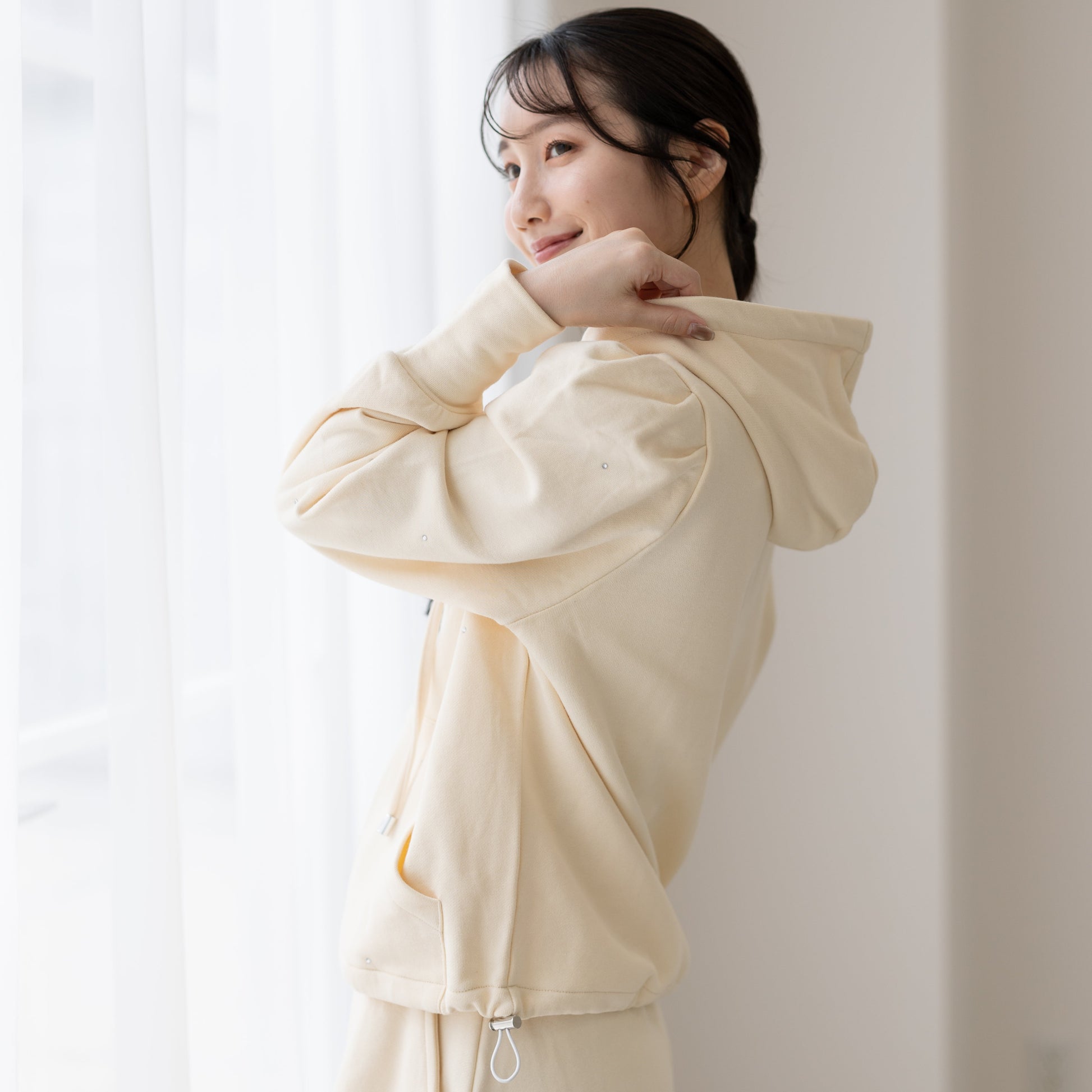リラックス感の中にもきちんと感を添える“大人スウェットパーカー”です。