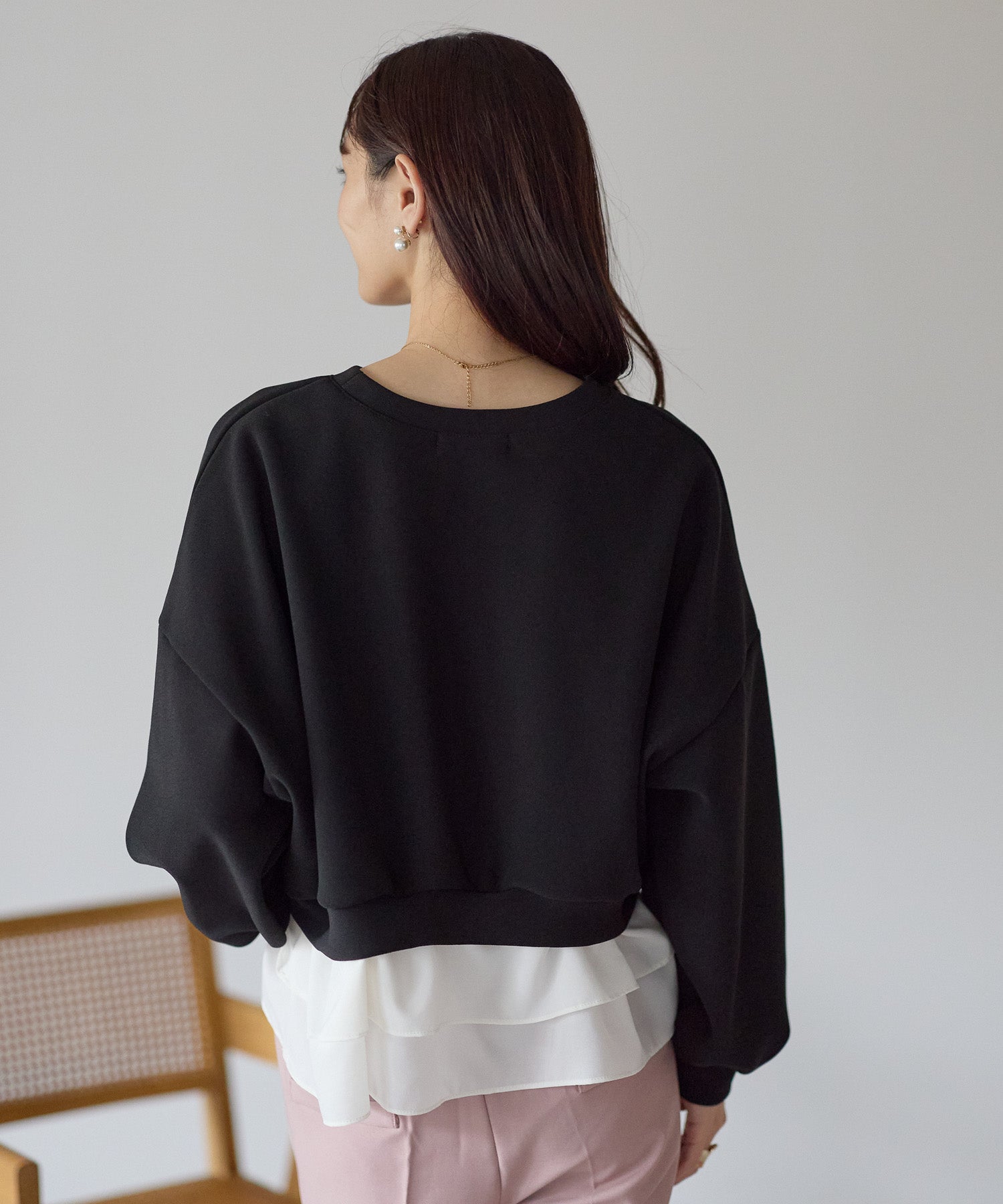 仕様:裾シフォンフリルレイヤード風デザイン/クルーネック