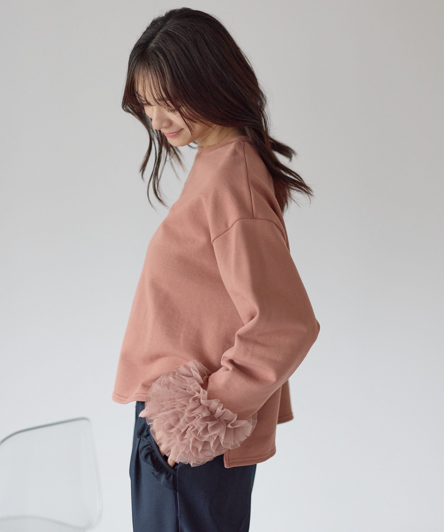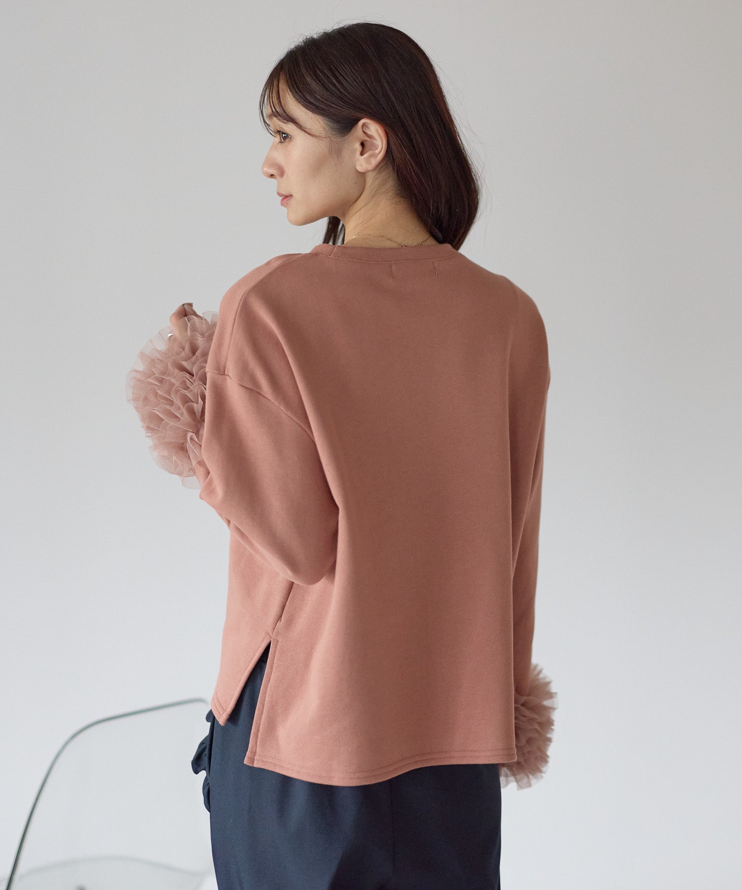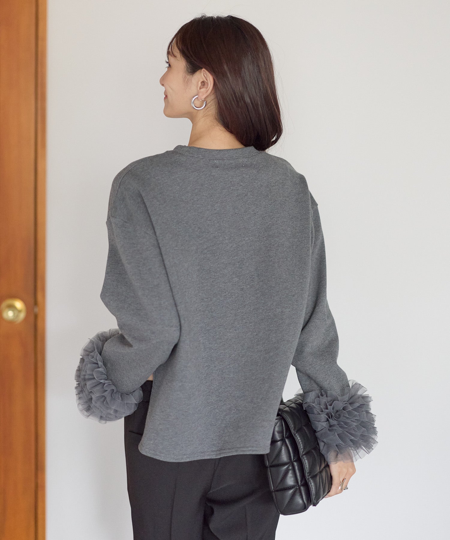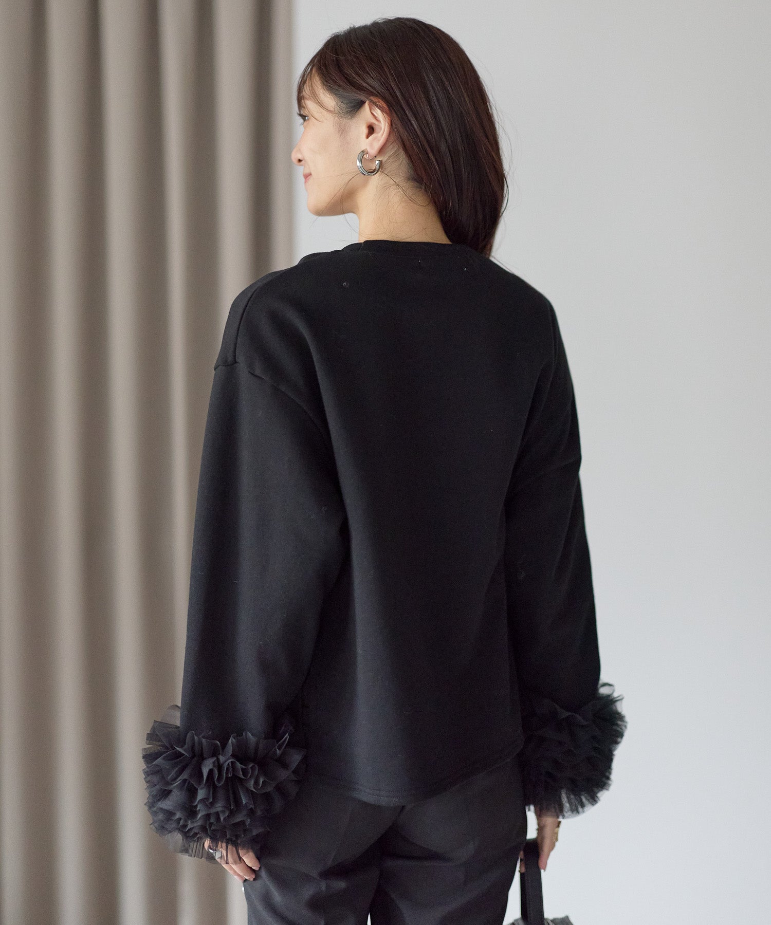 【11月28日(金)13時〜新発売】袖チュールフリルスウェットトップス