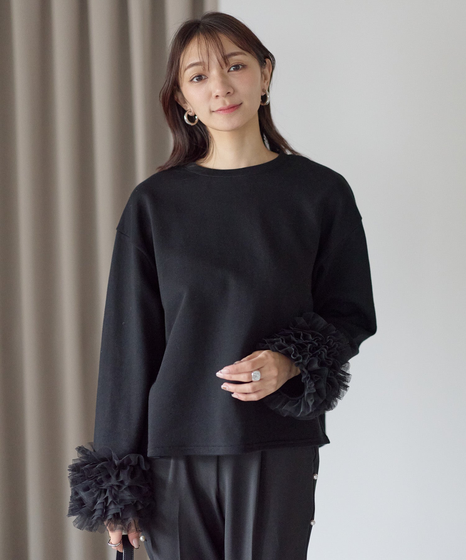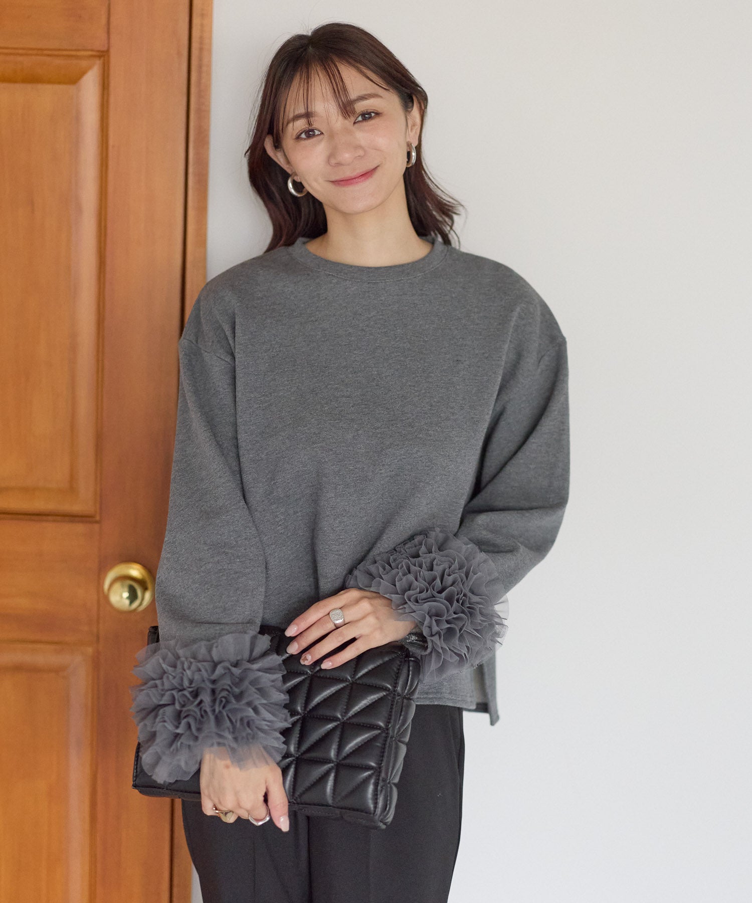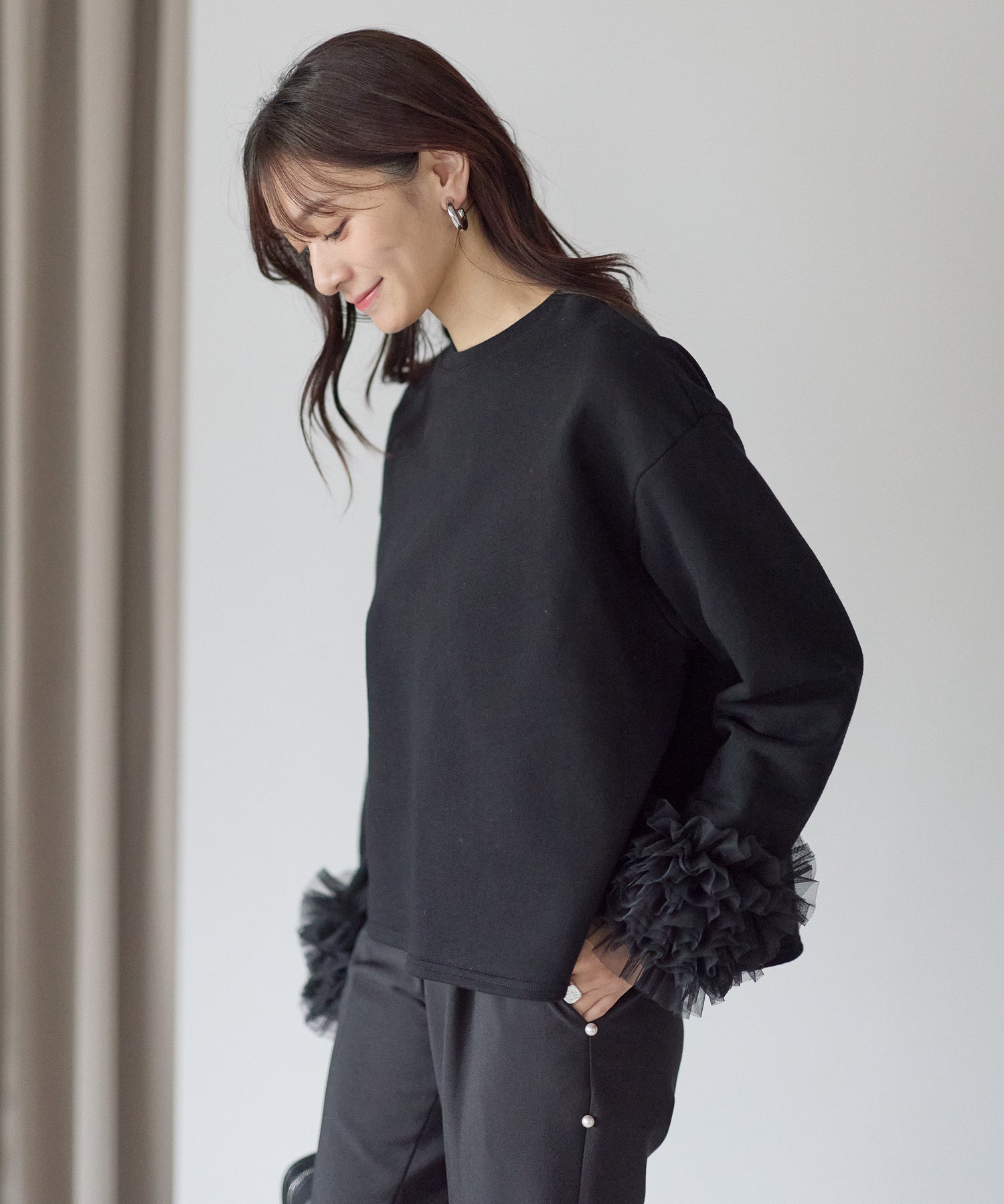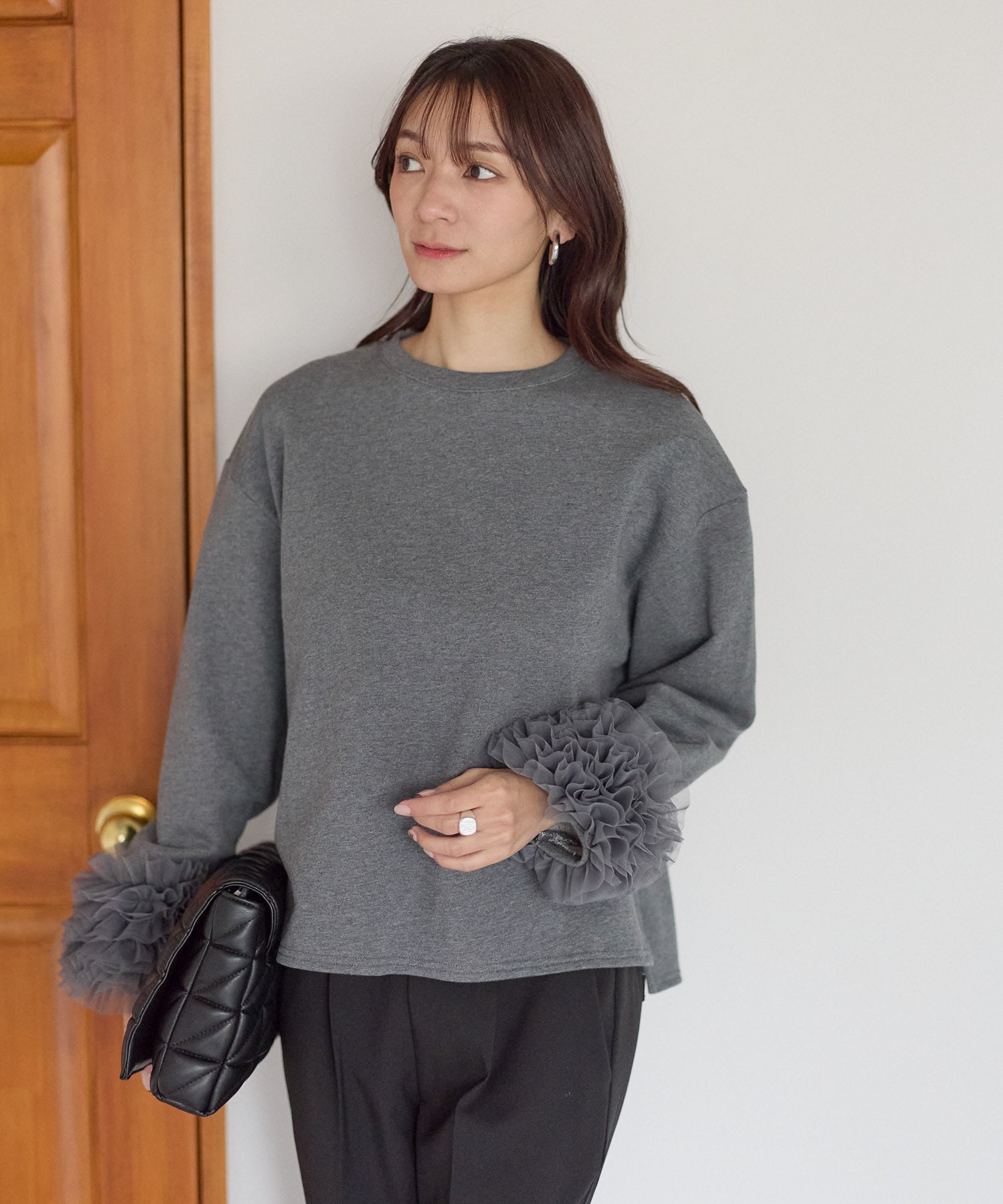 【11月28日(金)13時〜新発売】袖チュールフリルスウェットトップス