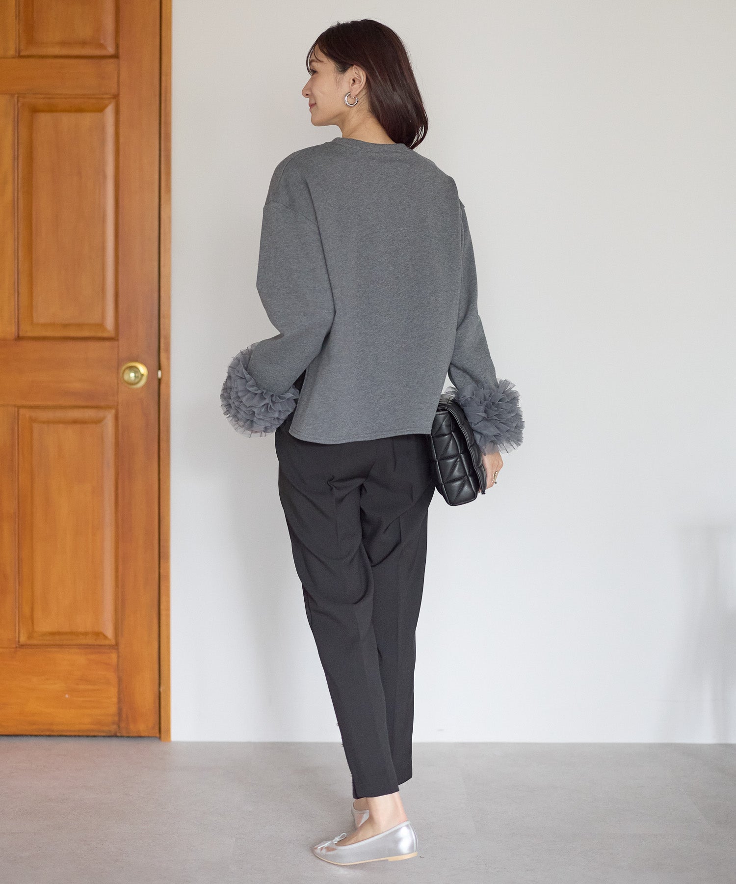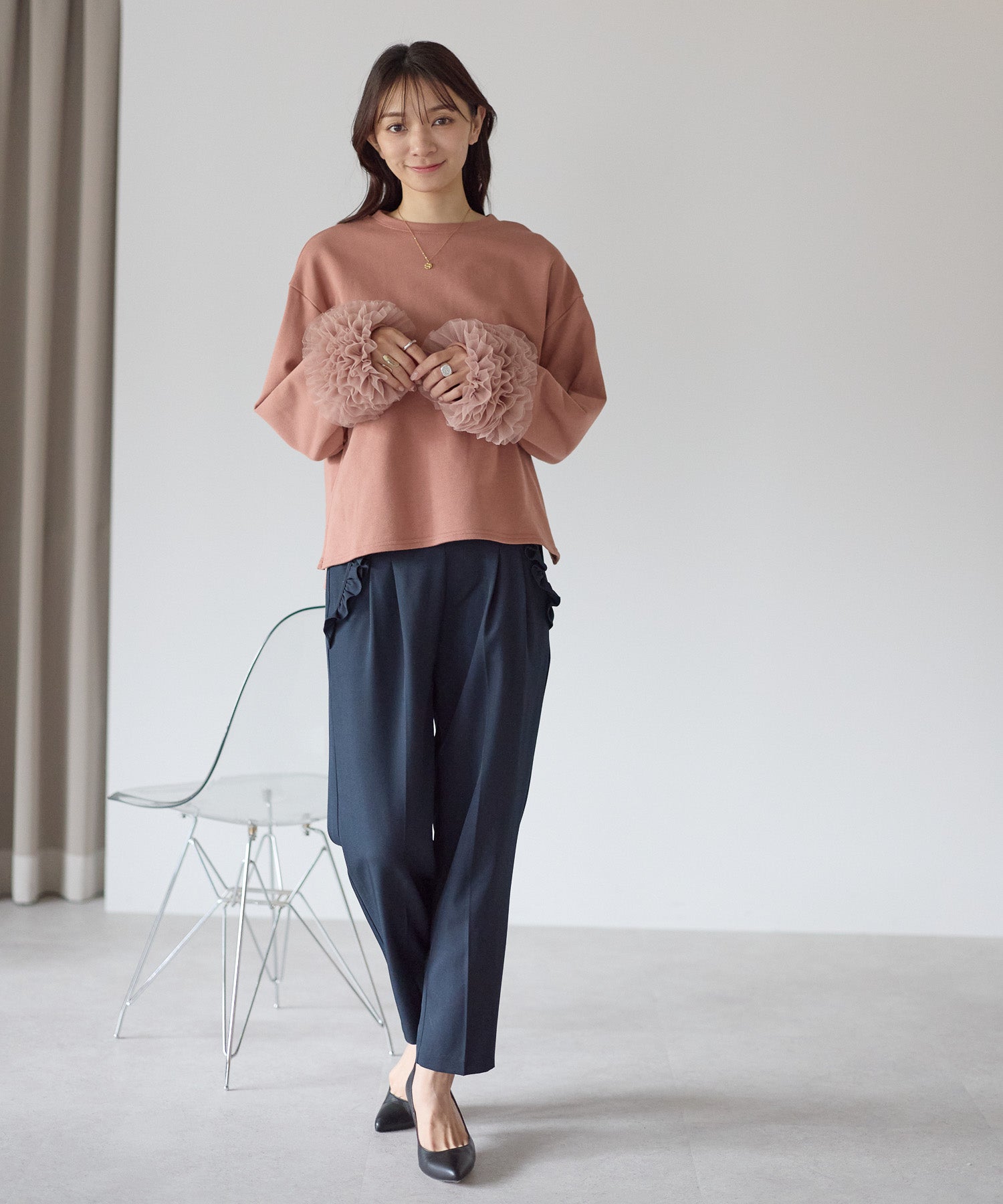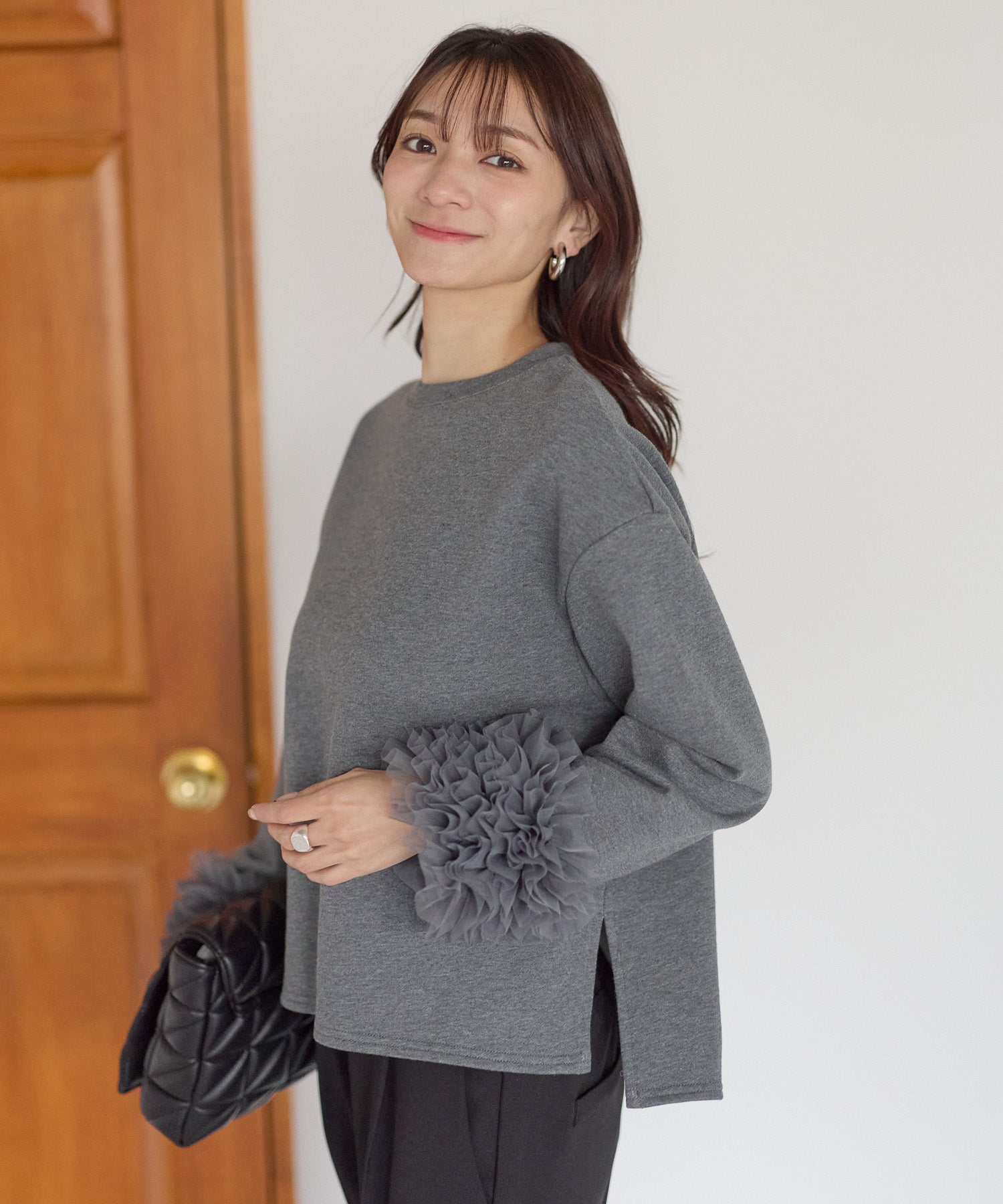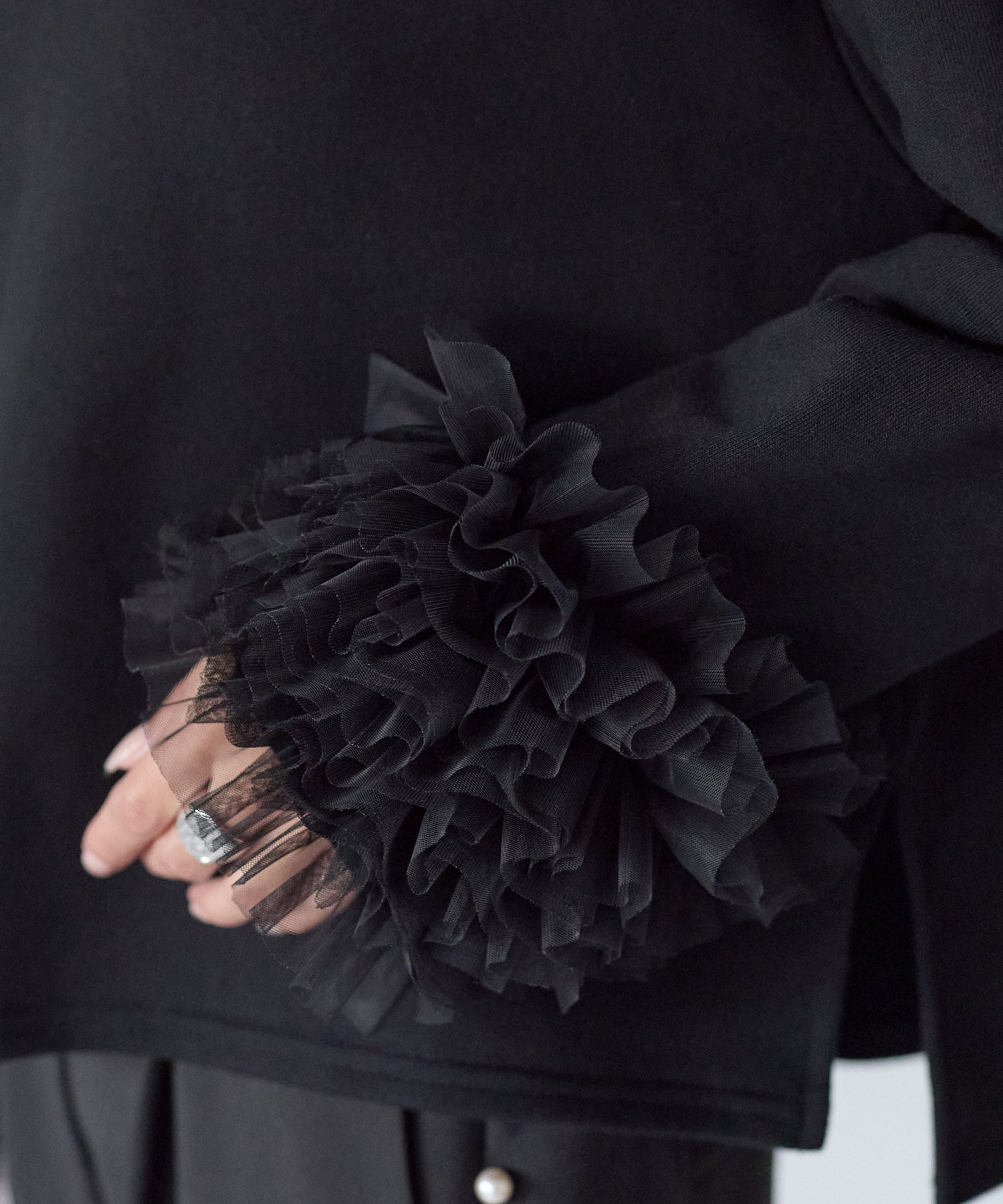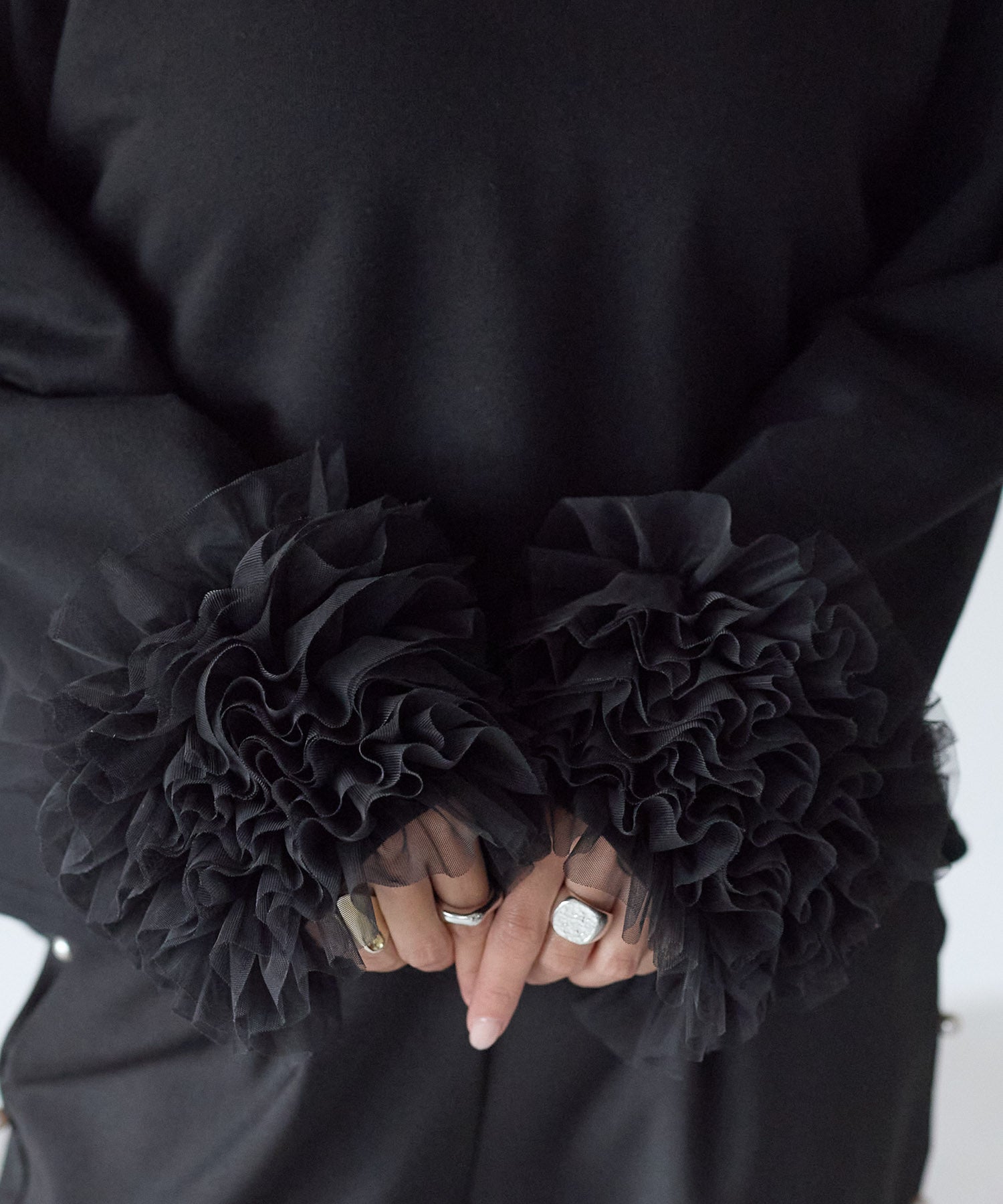 【11月28日(金)13時〜新発売】袖チュールフリルスウェットトップス