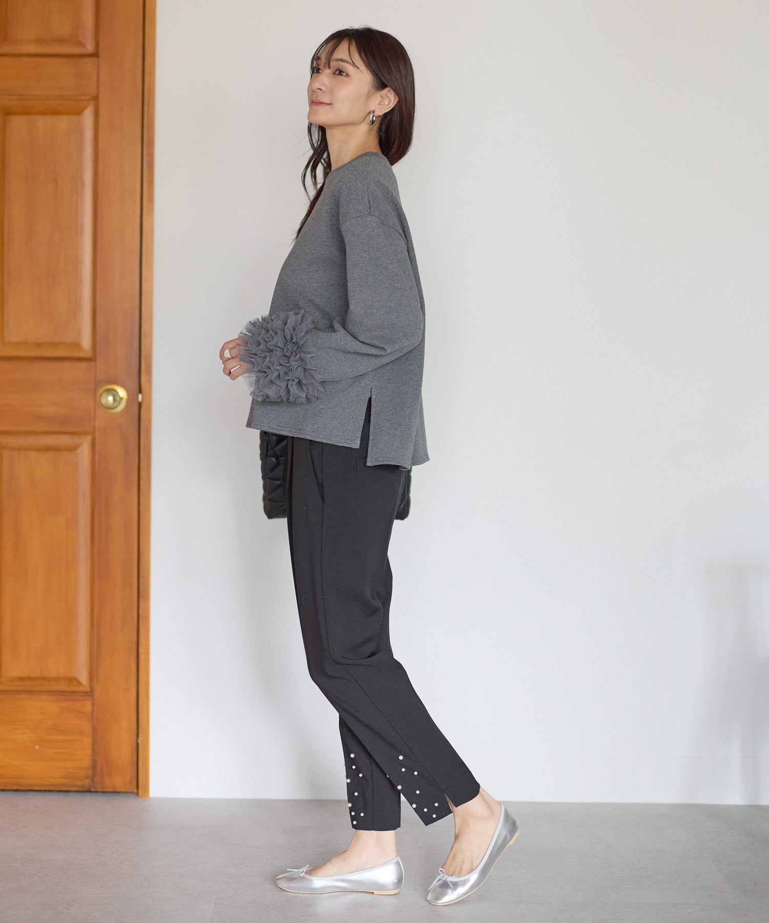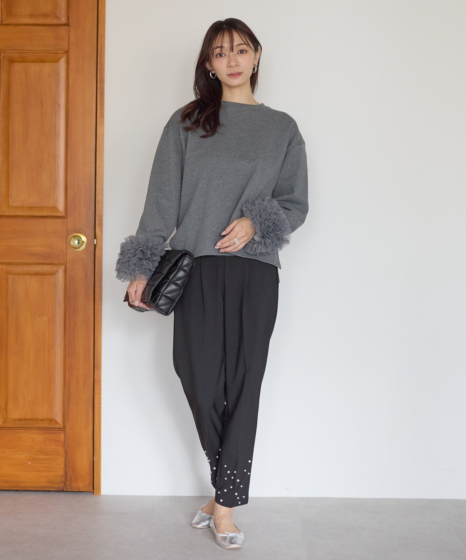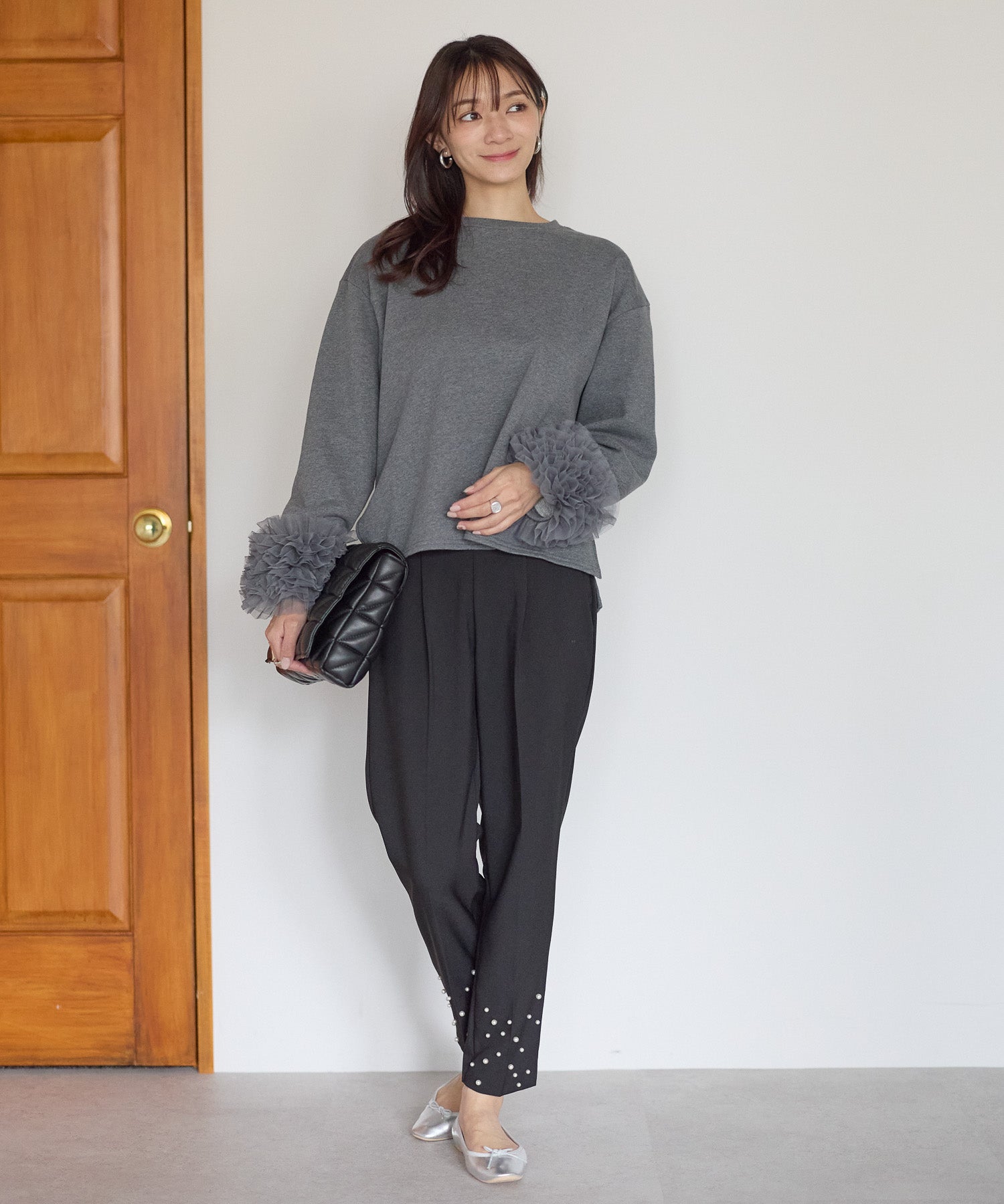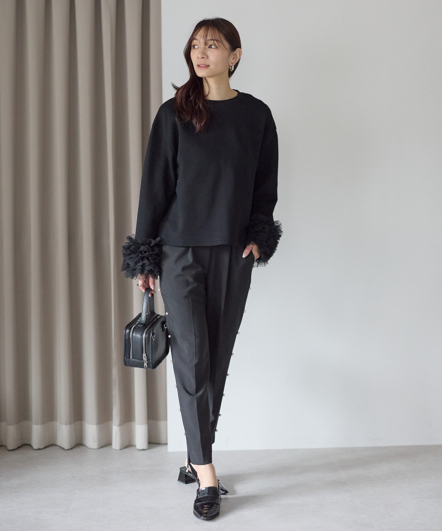 【11月28日(金)13時〜新発売】袖チュールフリルスウェットトップス